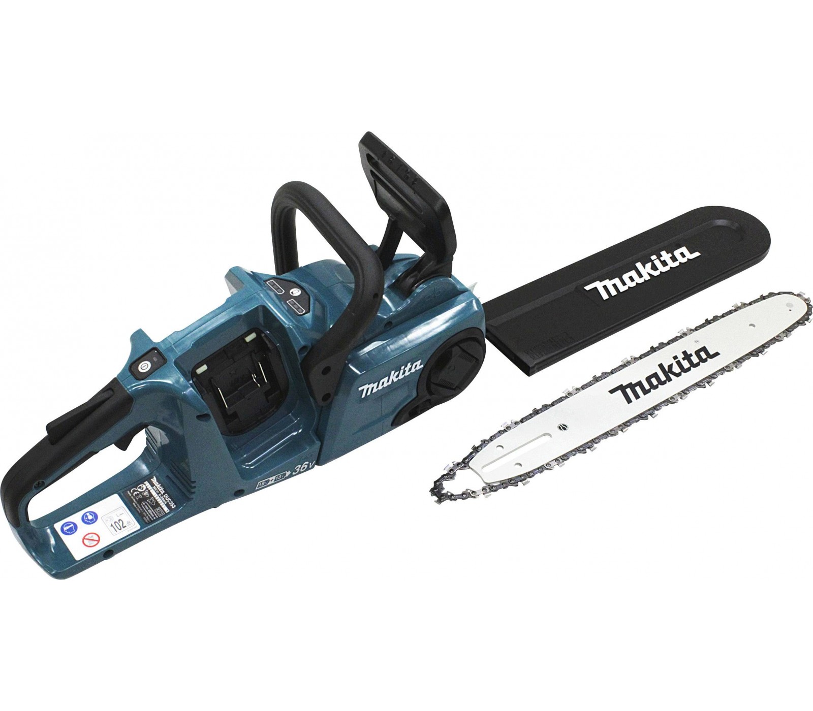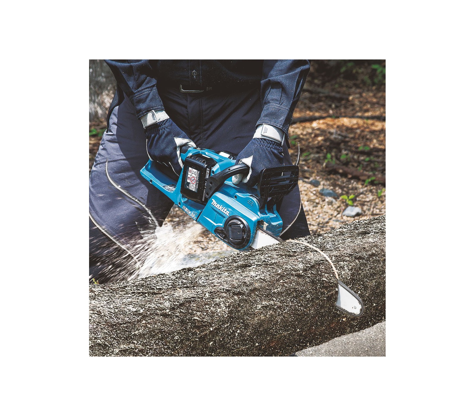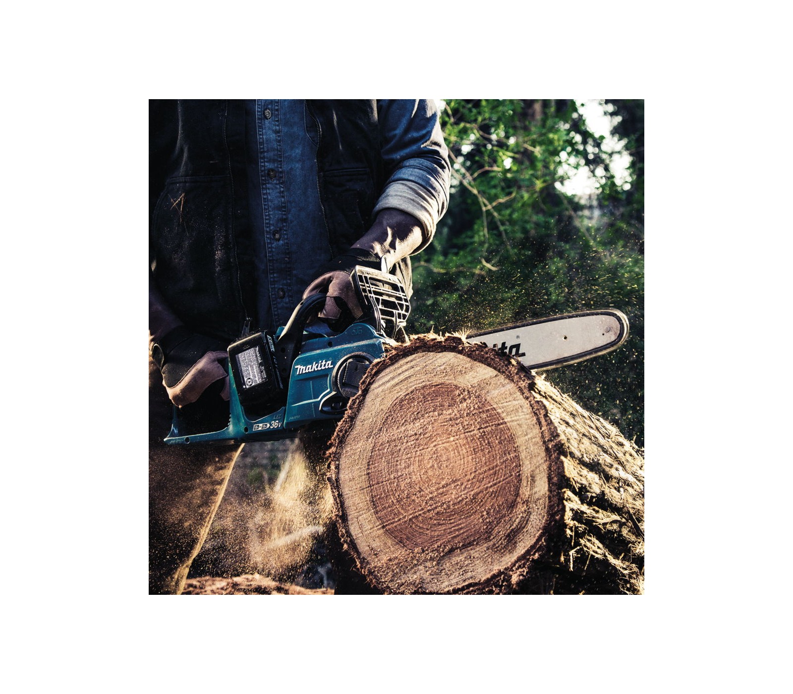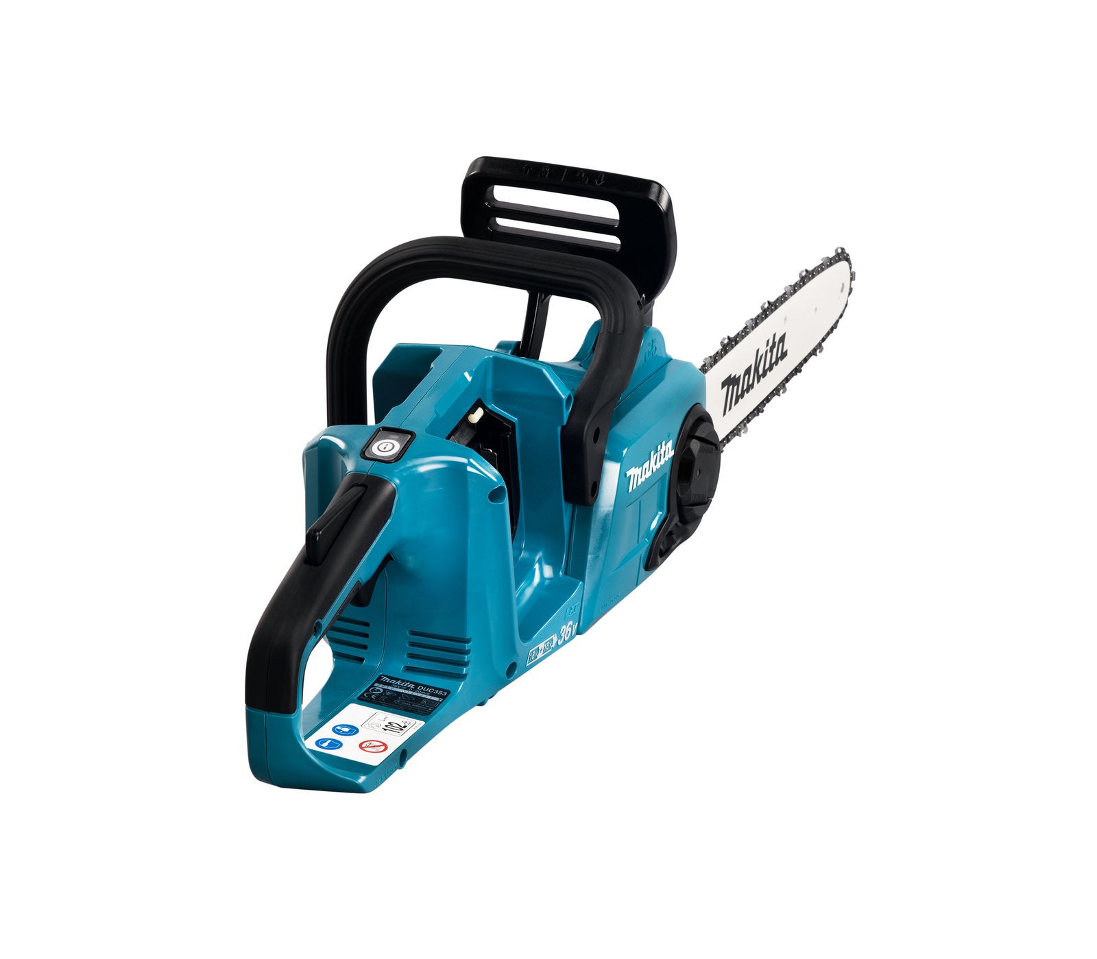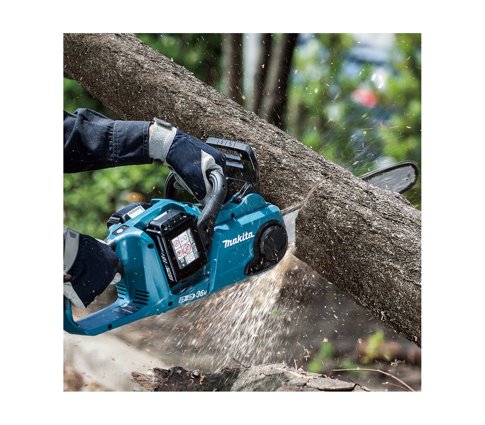 Makita DUC353Z bezvadu motorzāģis ir 18 V x 2 (36 V) jaudīgs instruments, kas nodrošina precīzu griešanu. Ar bezsuku motoru tas nodrošina ilgāku darba laiku un mazāku apkopi. 350 mm (14 collu) vadotne un 20 m/sec maksimālais ķēdes ātrums nodrošina ātru un tīru griešanu. Bezinstrumentu ķēdes spriegošana ļauj viegli pielāgot. 3,3 kg svars un ergonomisks rokturis nodrošina komfortu. 200 ml eļļas tvertne un zemas vibrācijas (5,9 m/sec²) un skaņas līmenis (100 dB(A)) padara darbu ērtāku.