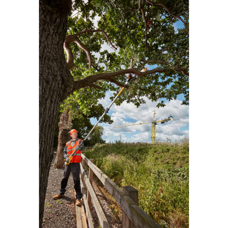 DeWALT DCMPS567N – akumulatora augstgriezis ar 20 cm zāģa sliedi, slīpu galvu un līdz 4,5 m sasniedzamību. Bezkolektora motors nodrošina līdz 55 griezumiem (100x100 mm). Viegls alumīnija korpuss. Akumulators un lādētājs nav iekļauti.