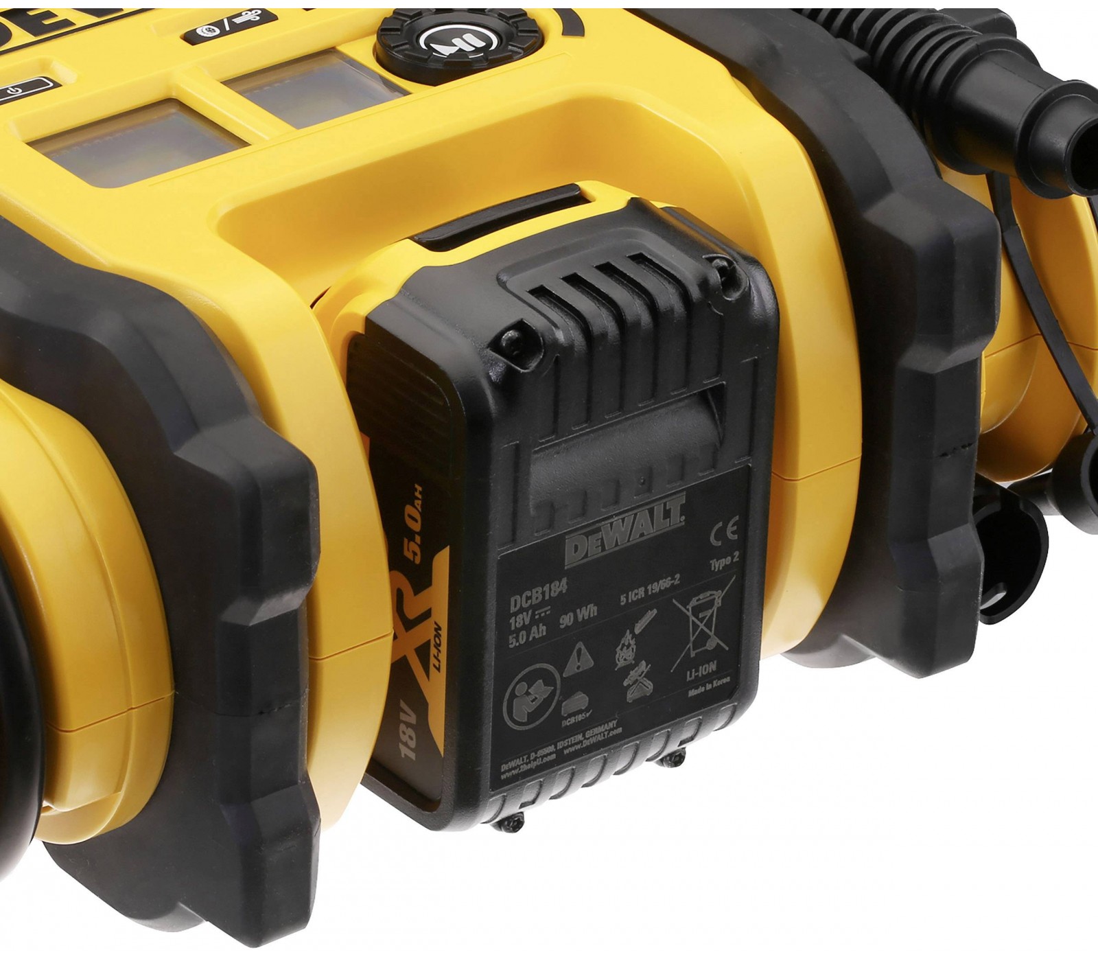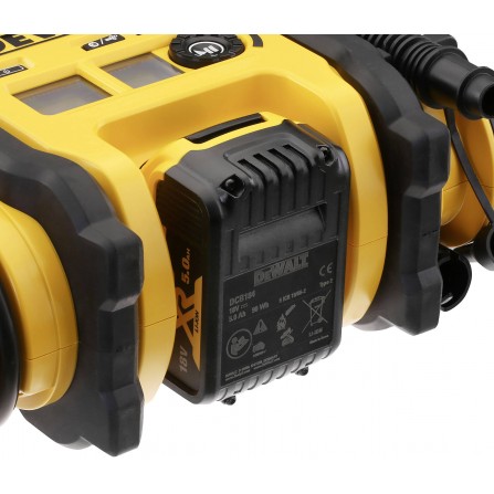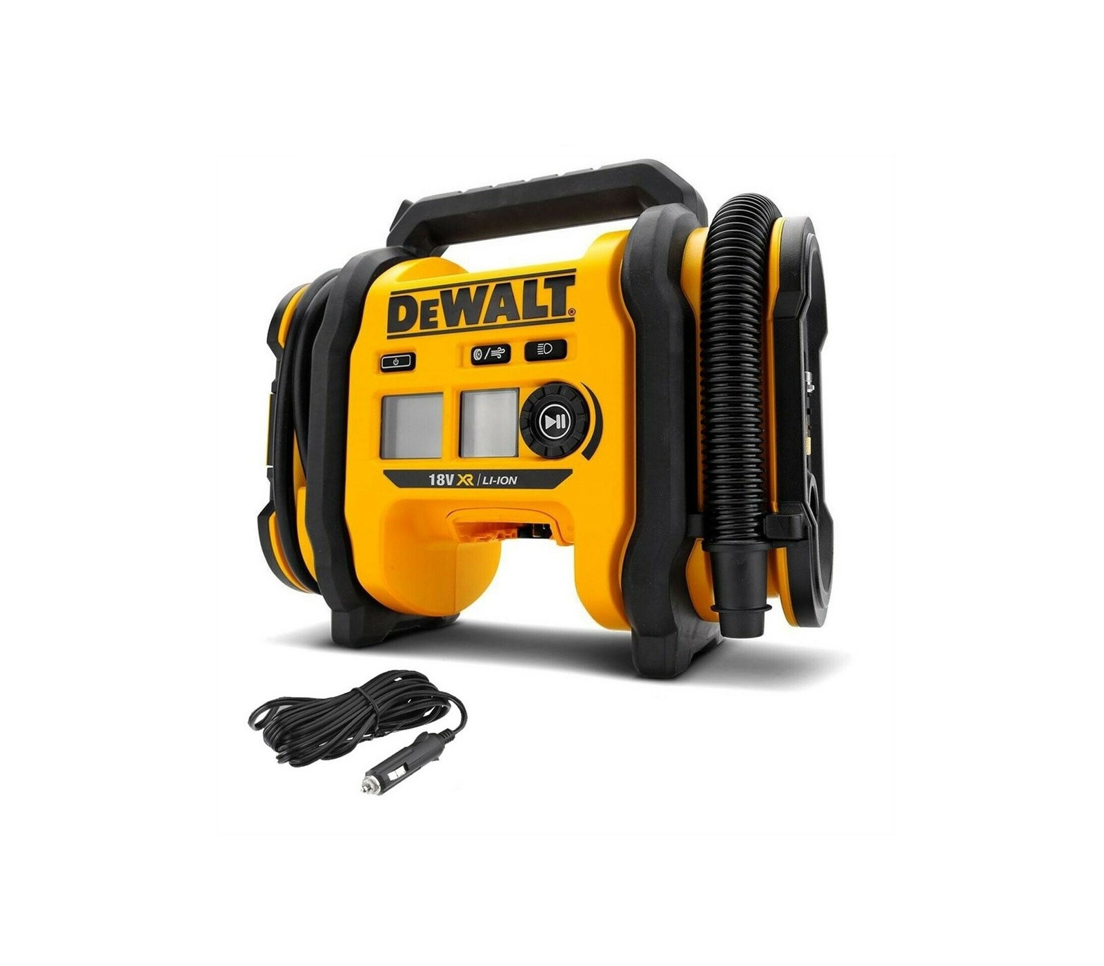 Dewalt DCC018N-XJ bezvadu gaisa kompresors piedāvā augstu veiktspēju kompakta un viegla dizaina ietvaros. Tas piedāvā augsta spiediena iznākumu līdz 11 bar (160 PSI), ideāli piemērots riepu piepumpēšanai, tostarp 235/70R17 riepu piepūšanai 400 sekundēs. Kompresoram ir ātra gaisa izlāde un vairāki barošanas avoti: 18V XR akumulatori, 12V akumulators vai 230V AC adapteris (pārdots atsevišķi). Ar digitālo manometru precīzai spiediena rādīšanai un LED gaismu darbam vājā apgaismojumā, šis rīks nodrošina precizitāti un ērtības. Tajā ir augsta spiediena adapteris, Presta velosipēda adapteris un bumbas adata.