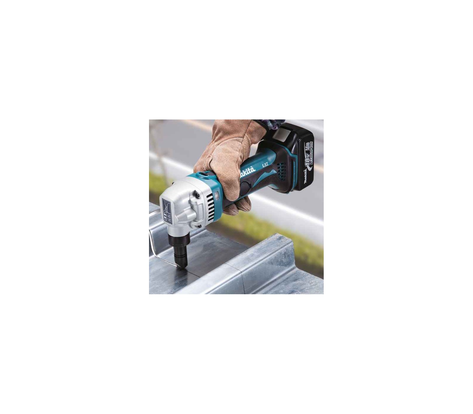 Makita DJN161Z ir slaids 18V bezvadu skārda griezējs, kas nodrošina tīrus un precīzus taisnus vai izliekumus griezumus metālā, alumīnijā un nerūsējošajā tēraudā. 360° rotējošais griešanas instruments padara to ideāli piemērotu jumta un profilētām loksnēm. Griezuma jauda: līdz 2,5 mm alumīnijs, 1,6 mm tērauds, 1,2 mm nerūsējošais tērauds. Darba ātrums – 1900 griezieni/min. Aprīkots ar pārslodzes aizsardzību, aizsardzību pret nejaušu ieslēgšanu un akumulatora aizsardzību. Akumulators un lādētājs nav iekļauti.