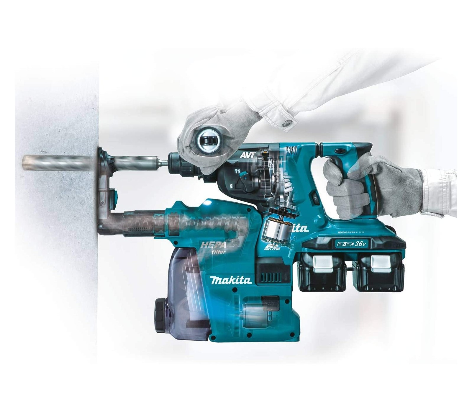 Akumulatora urbjmašīna Makita DHR283ZWJU, 36 V, 2,9 J, putekļsūcējs + korpuss
