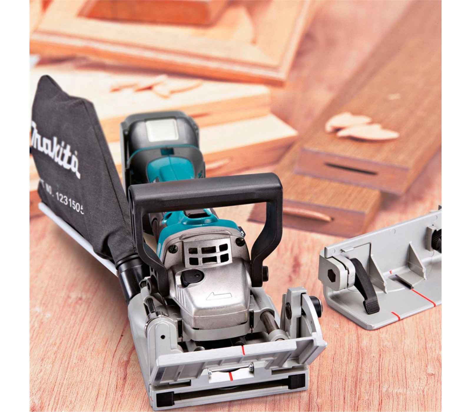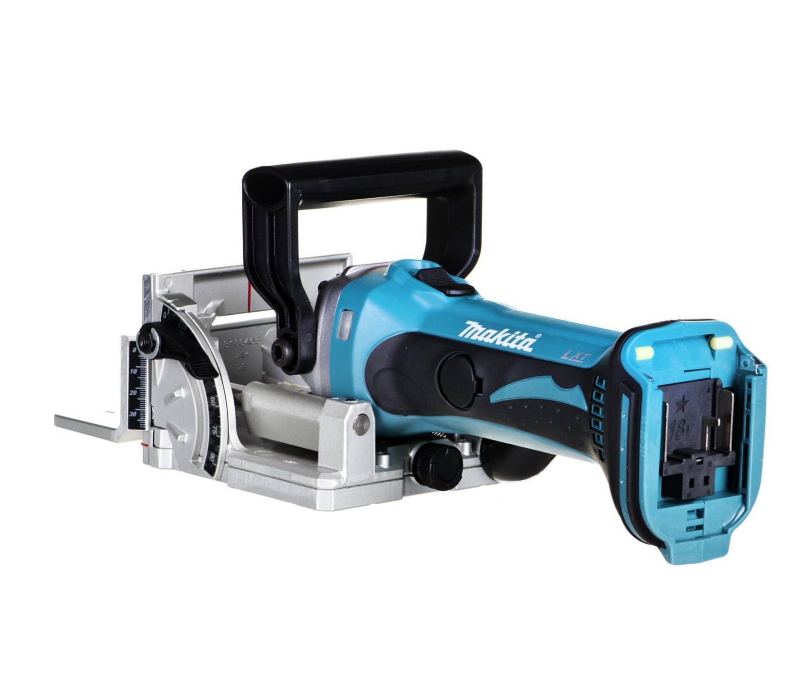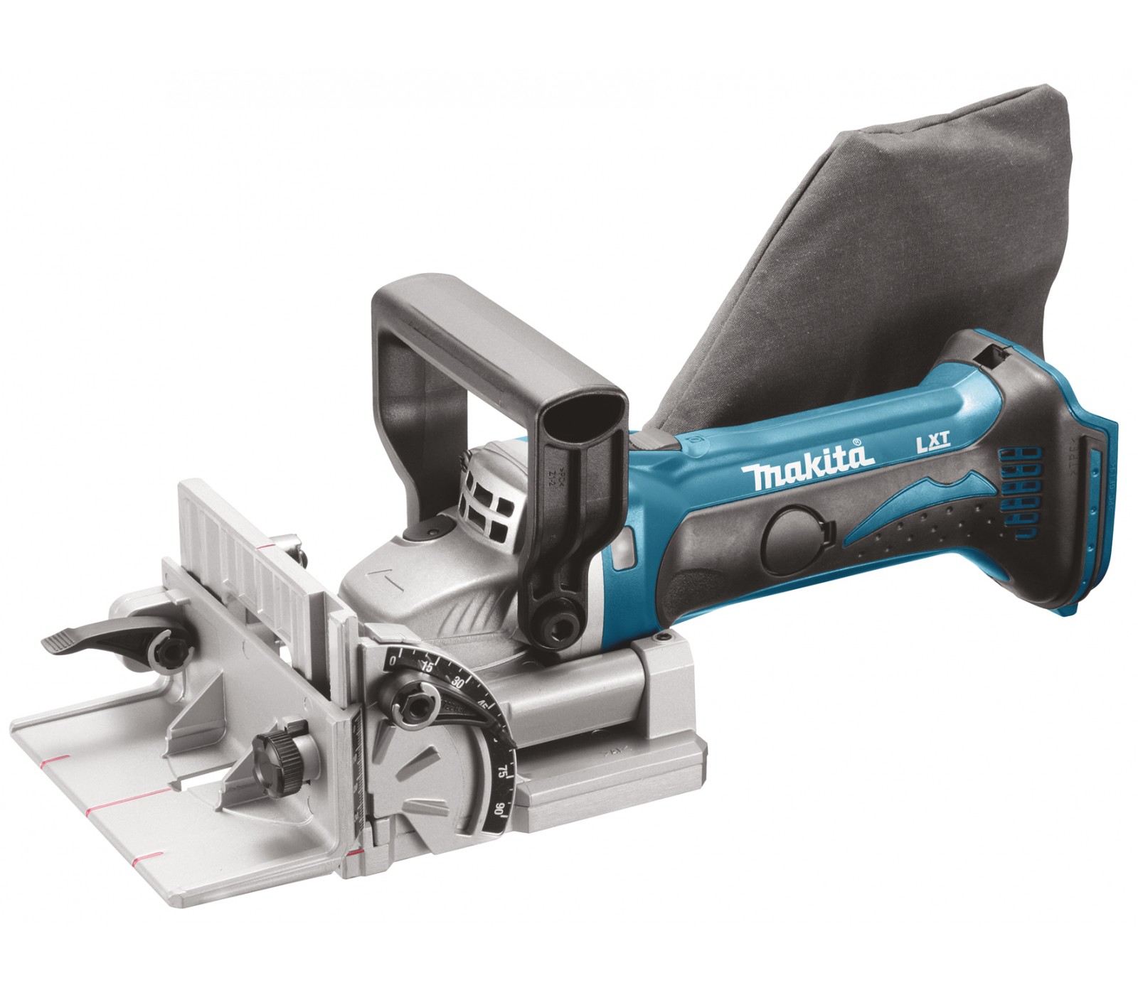 Makita DPJ180Z – 18V LXT® bezvadu frēzmašīna ar 6 dziļuma iestatījumiem. Regulējams leņķa vadotne (bloķējama 0°, 45°, 90°). Elektroniskā pārslodzes aizsardzība, putekļu maisiņš. Maks. griešanas dziļums: 20 mm. Svars ar akumulatoru ~3 kg. Bez akumulatora un lādētāja.