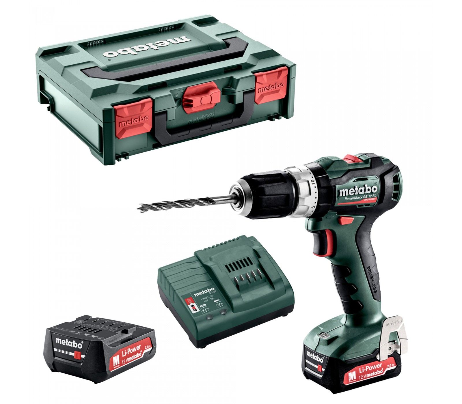 Akumulatora skrūvgrieža Metabo PowerMaxx SB 12 BL (601077500) komplekts, 12 V, 2 x 2 Ah, lādētājs + maciņš