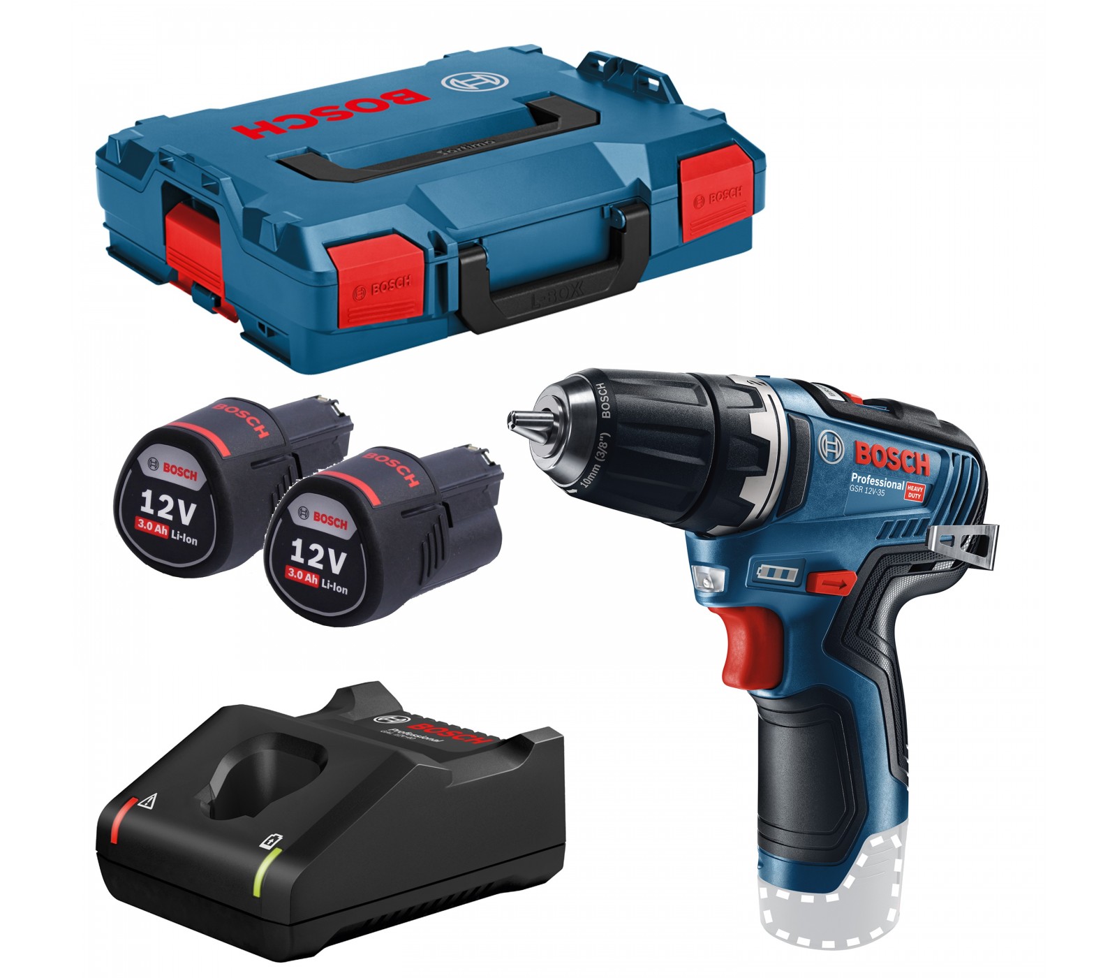 Akumulatora skrūvgriežu komplekts Bosch GSR 12V-35, 12 V, 2 x 3 Ah, lādētājs + maciņš