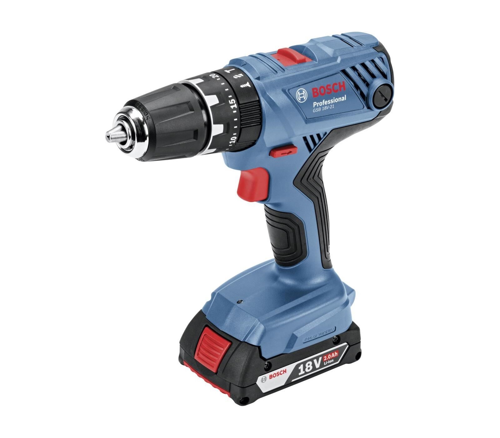 Akumulatora urbjmašīnas Bosch GSR 18V-21 (06019H100A) komplekts, 18 V, 2 x 2 Ah, lādētājs + maciņš