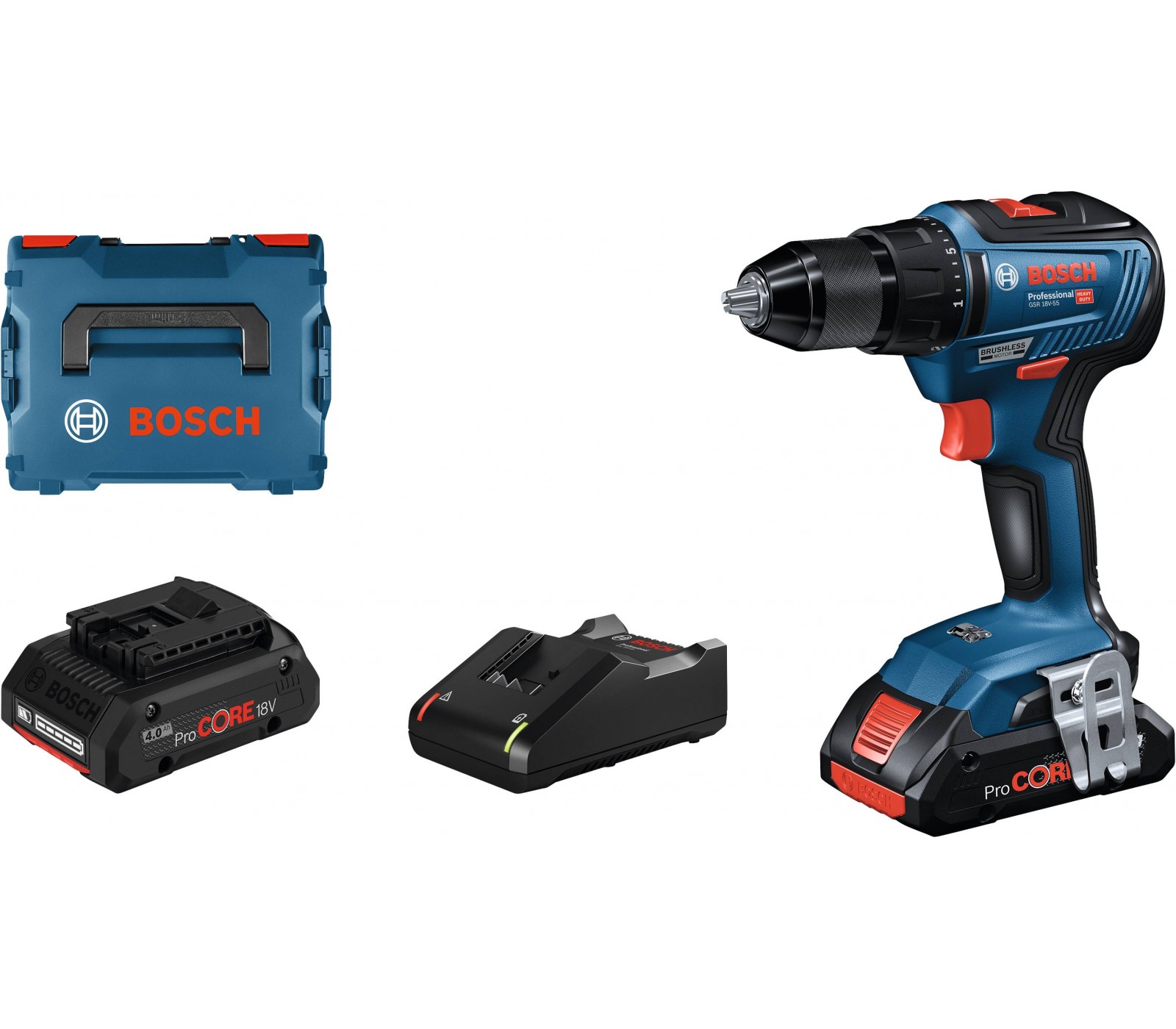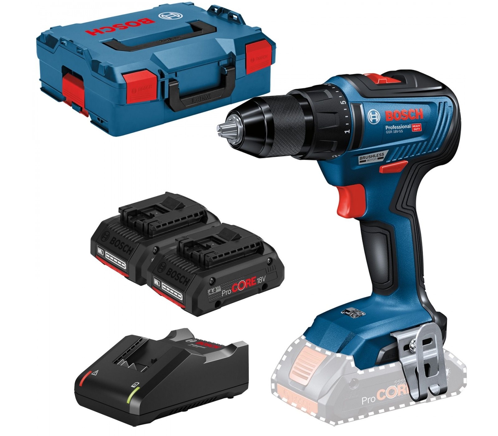 Akumulatora urbjmašīnas Bosch GSR 18V-55 (06019H5204) komplekts, 18 V, 2 x 4 Ah, lādētājs + maciņš