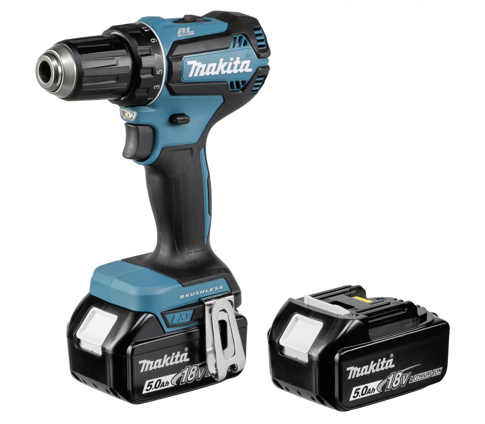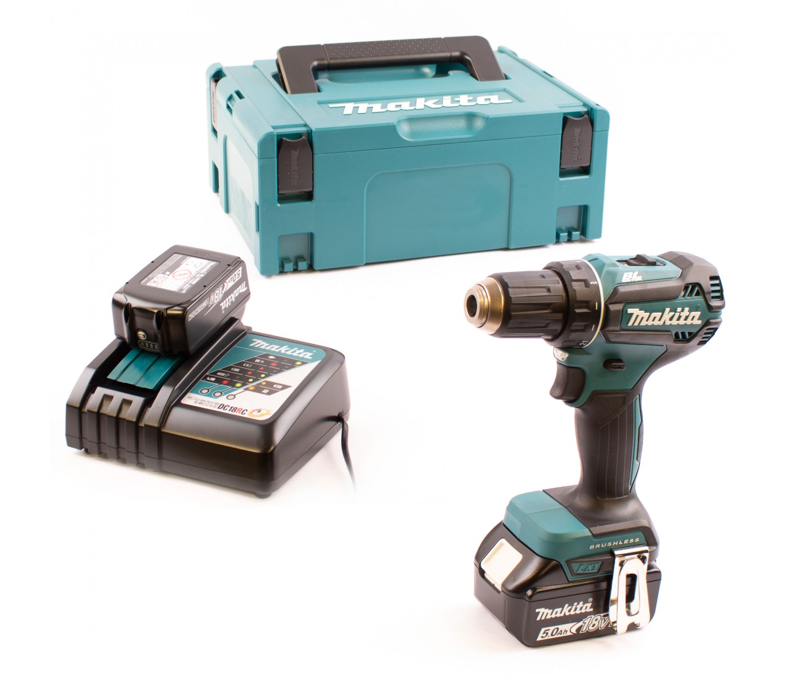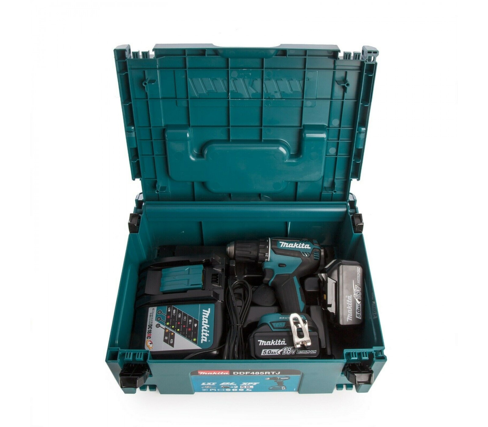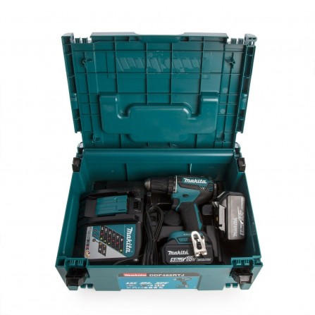 Makita akumulatora urbjmašīna (DDF485RTJ) komplekts, 18 V, 2 x 5 Ah, lādētājs + korpuss