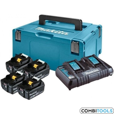 Akumulatoru komplekts Makita BL1860B (+4x BL1860B akumulators + dubultā ātrā lādētājs DC18RD + MAKPAC III maciņš)