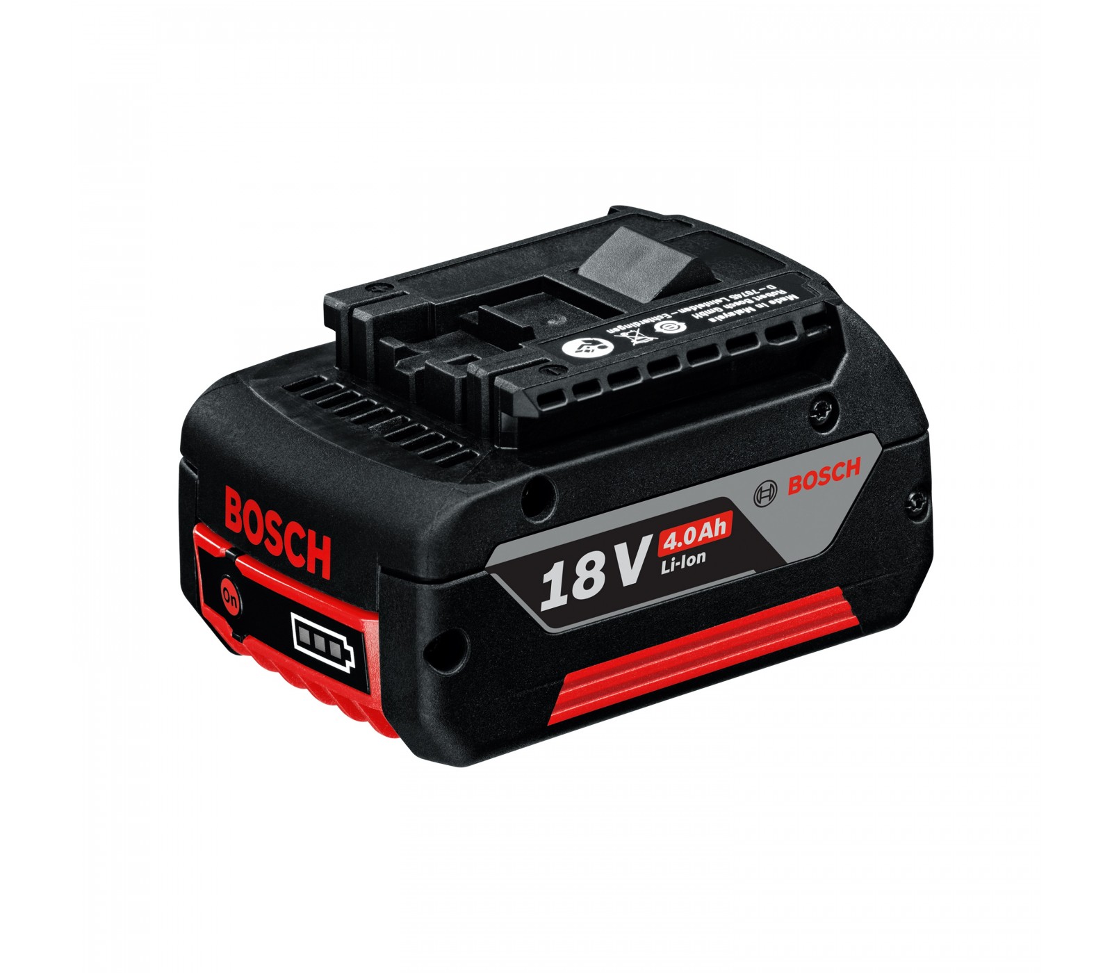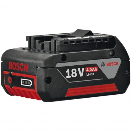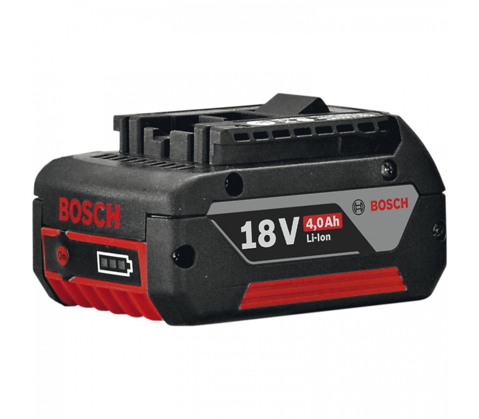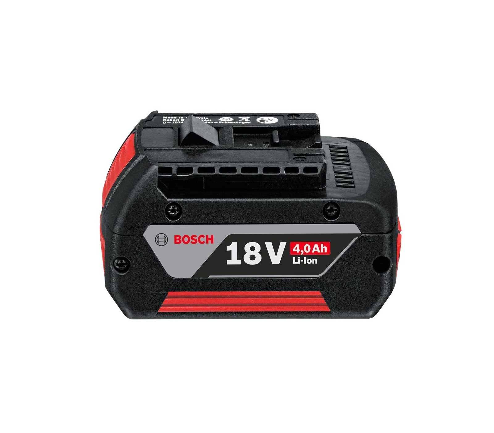 Bosch GBA 18 V (4,0 Ah) – galingas un ilgmūžīgs 4,0 Ah akumulators, kas paredzēts ilgstošai lietošanai ar Bosch 18 V instrumentiem.