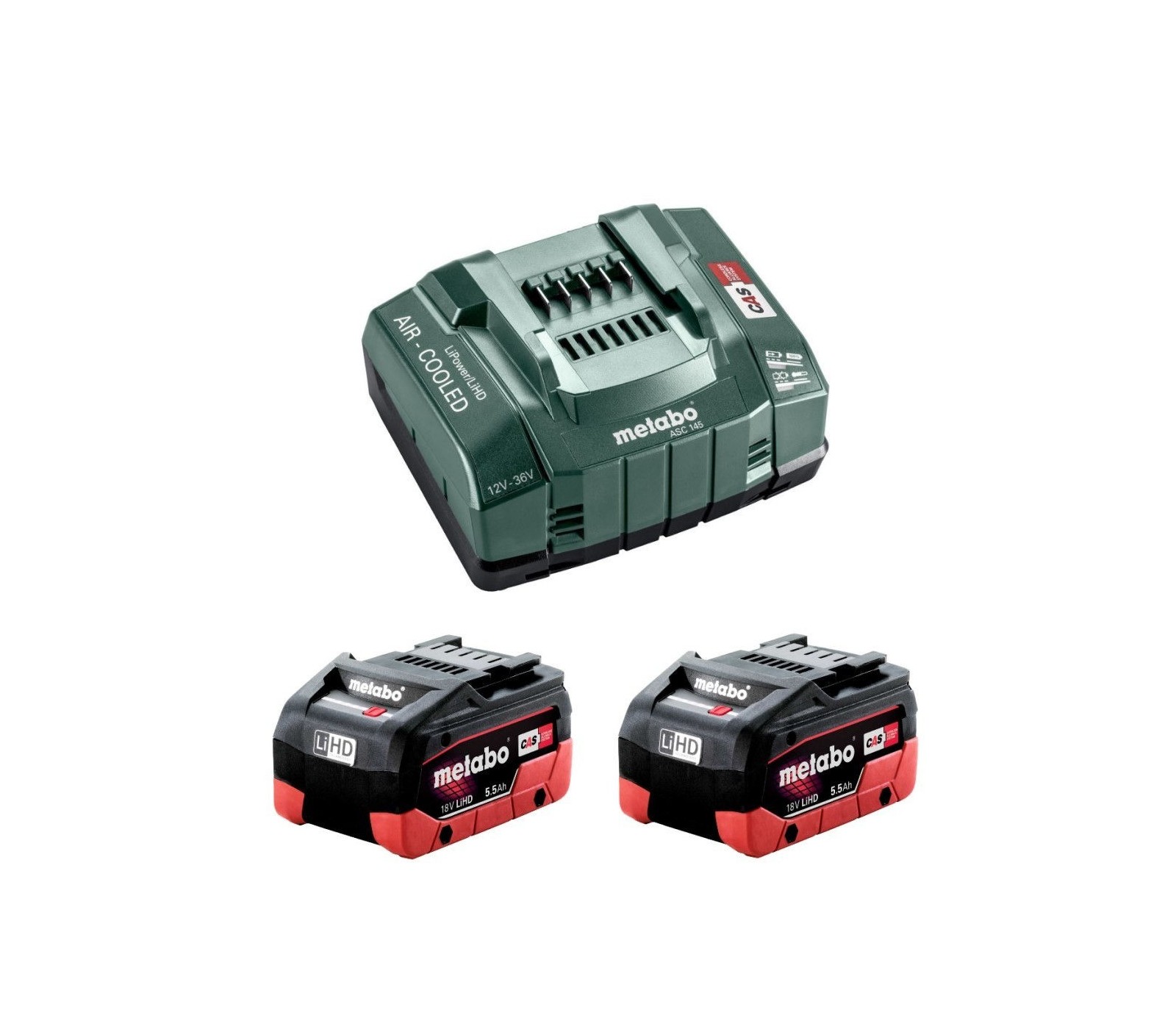 Akumulatoru komplekts 2 x 5,5 Ah, 18 V un lādētājs ASC 145 Metabo Basic (685122000)