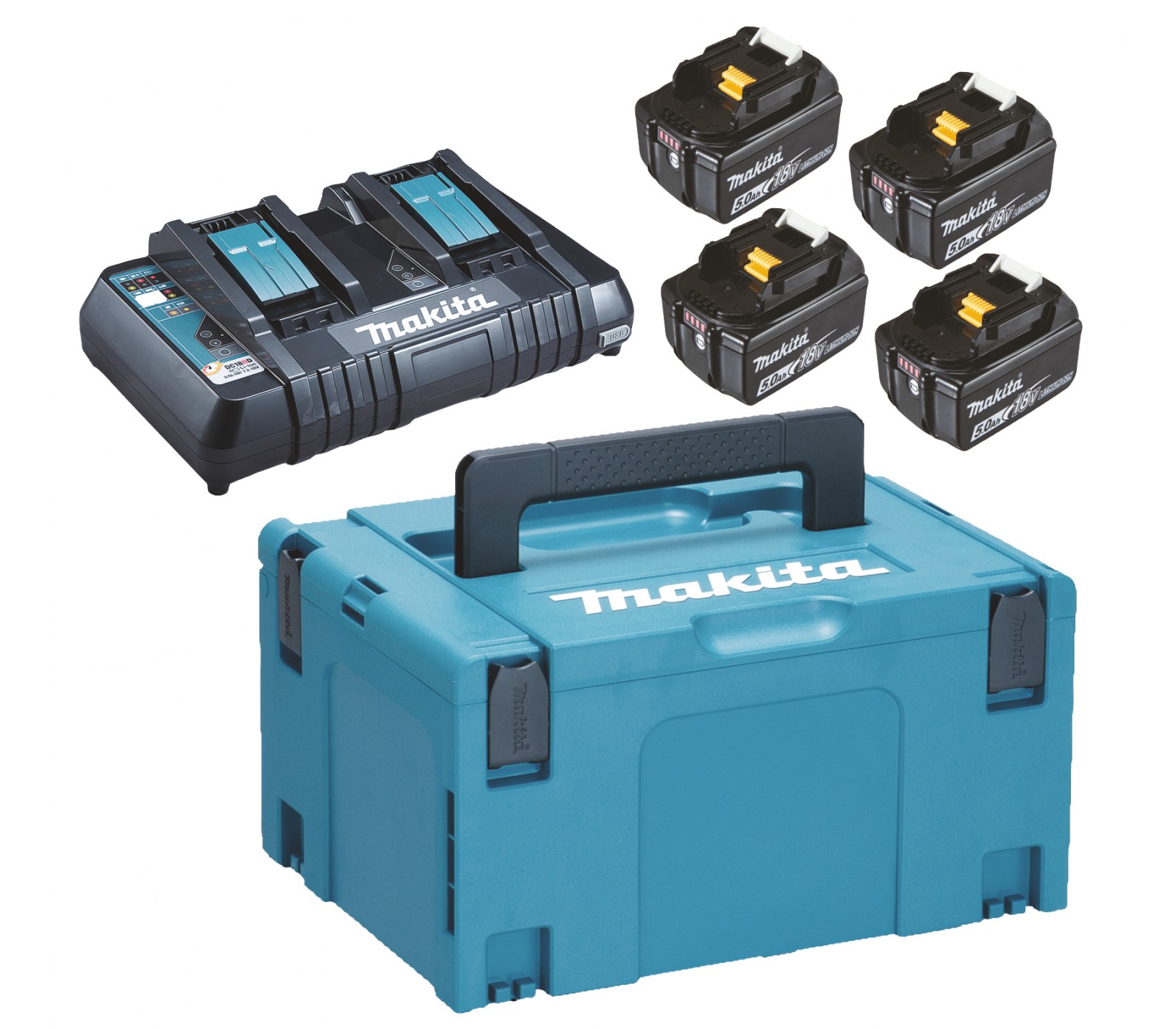 Makita akumulatoru komplekts 4 x BL1850B un lādētājs DC18RD + maciņš (197626-8)