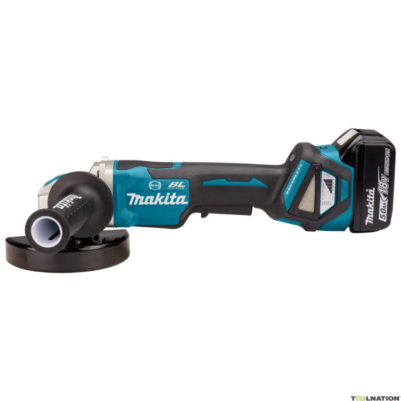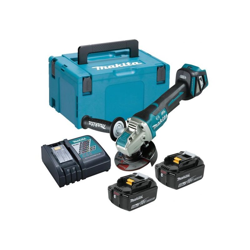 Akumulatora leņķa slīpmašīna Makita DGA519RTJ (+2x akumulatori + lādētājs + maciņš MACPAC 3)