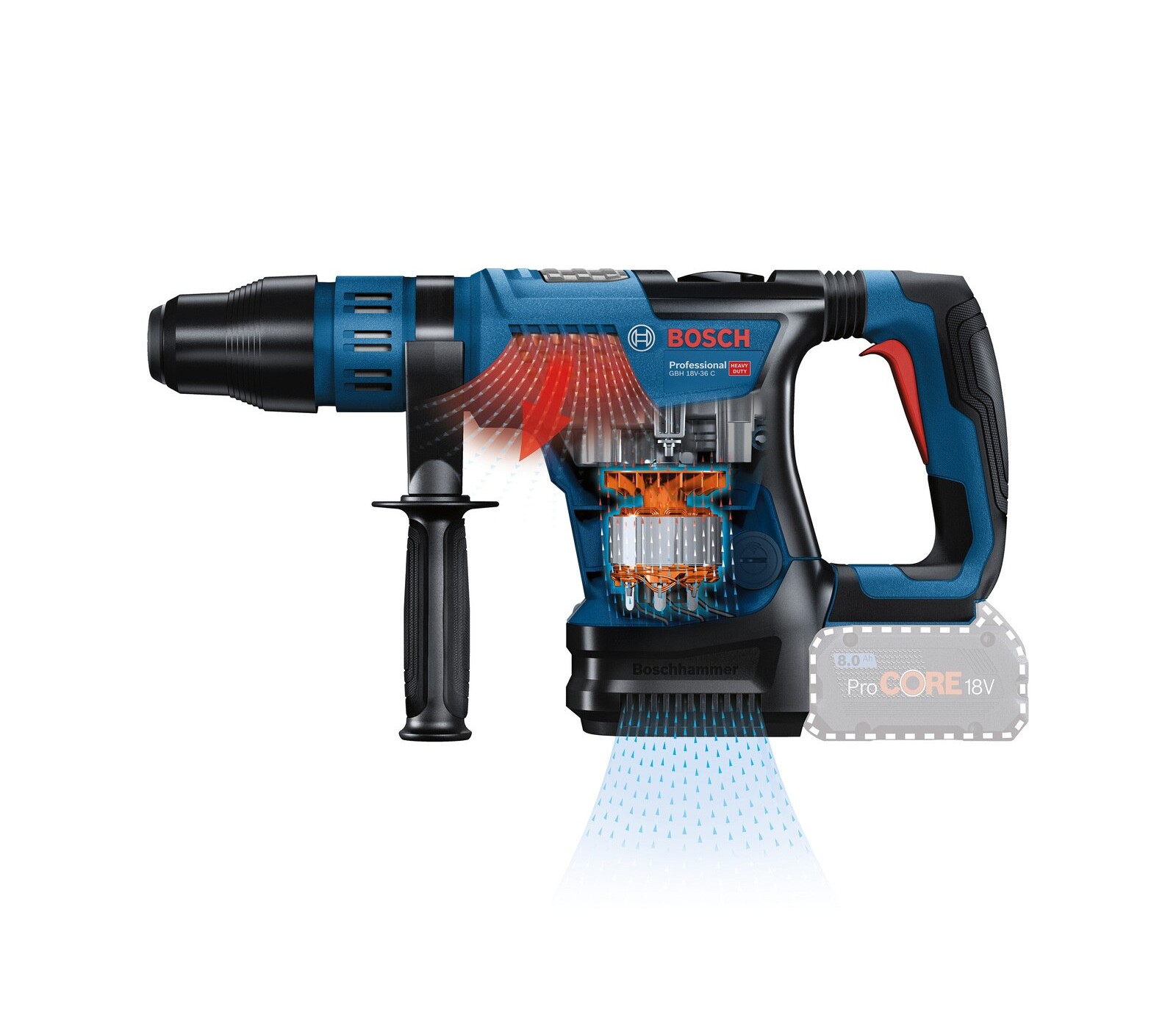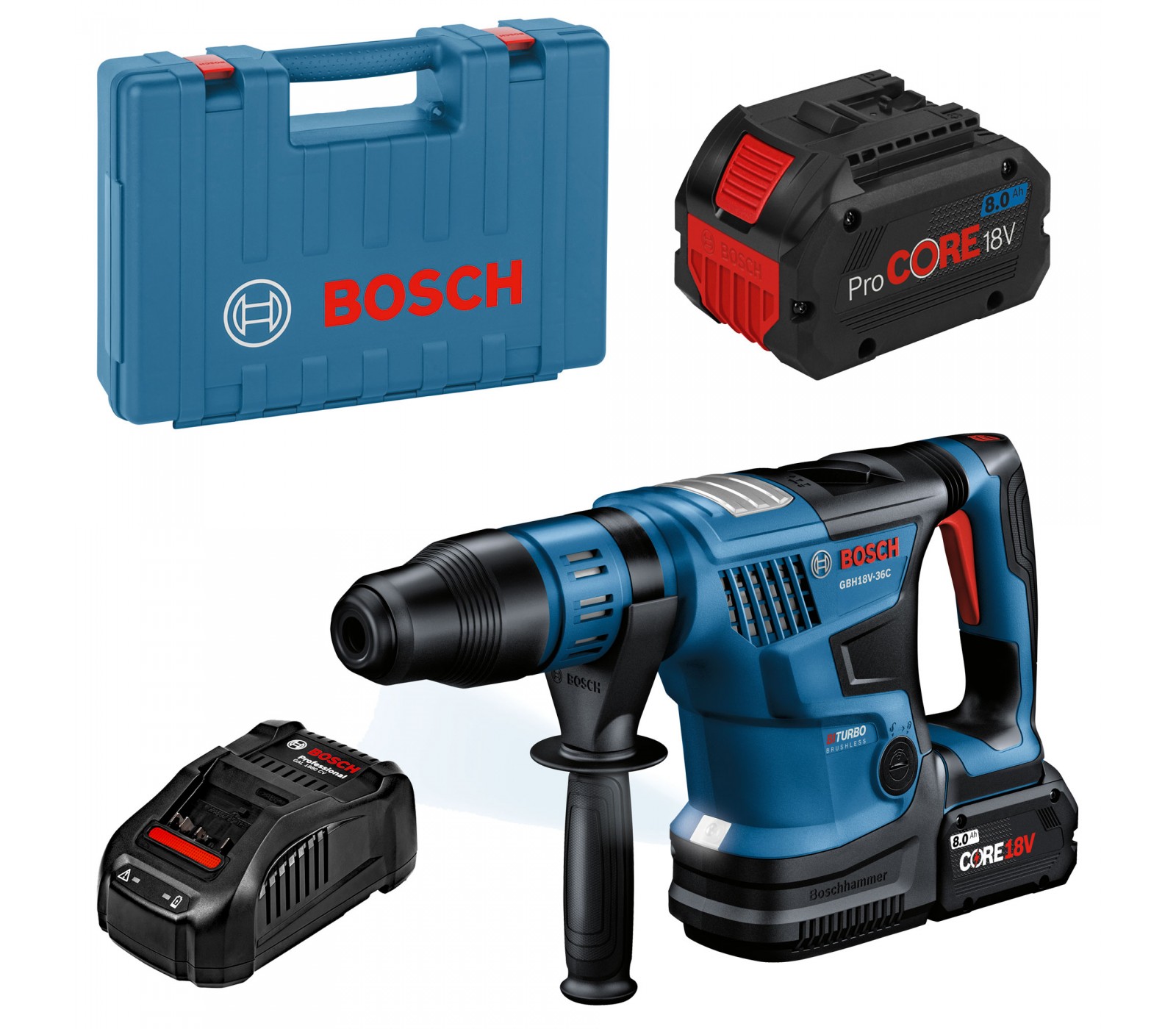 Akumulatora urbjmašīna Bosch GBH 18V-36 C Biturbo komplekts, SDS max, 18 V, 2 x 8 Ah, lādētājs, modulis + korpuss