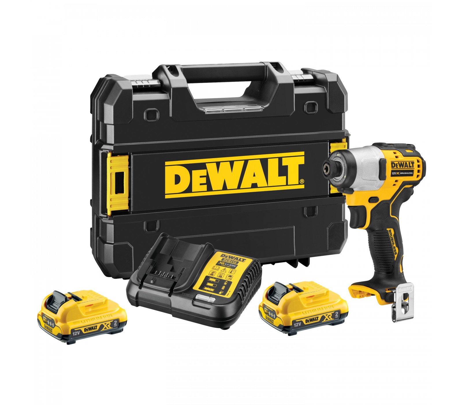Dewalt bezvadu trieciena draivera komplekts DCF801D2-QW 12 V 2 x 2 Ah lādētājs + korpuss