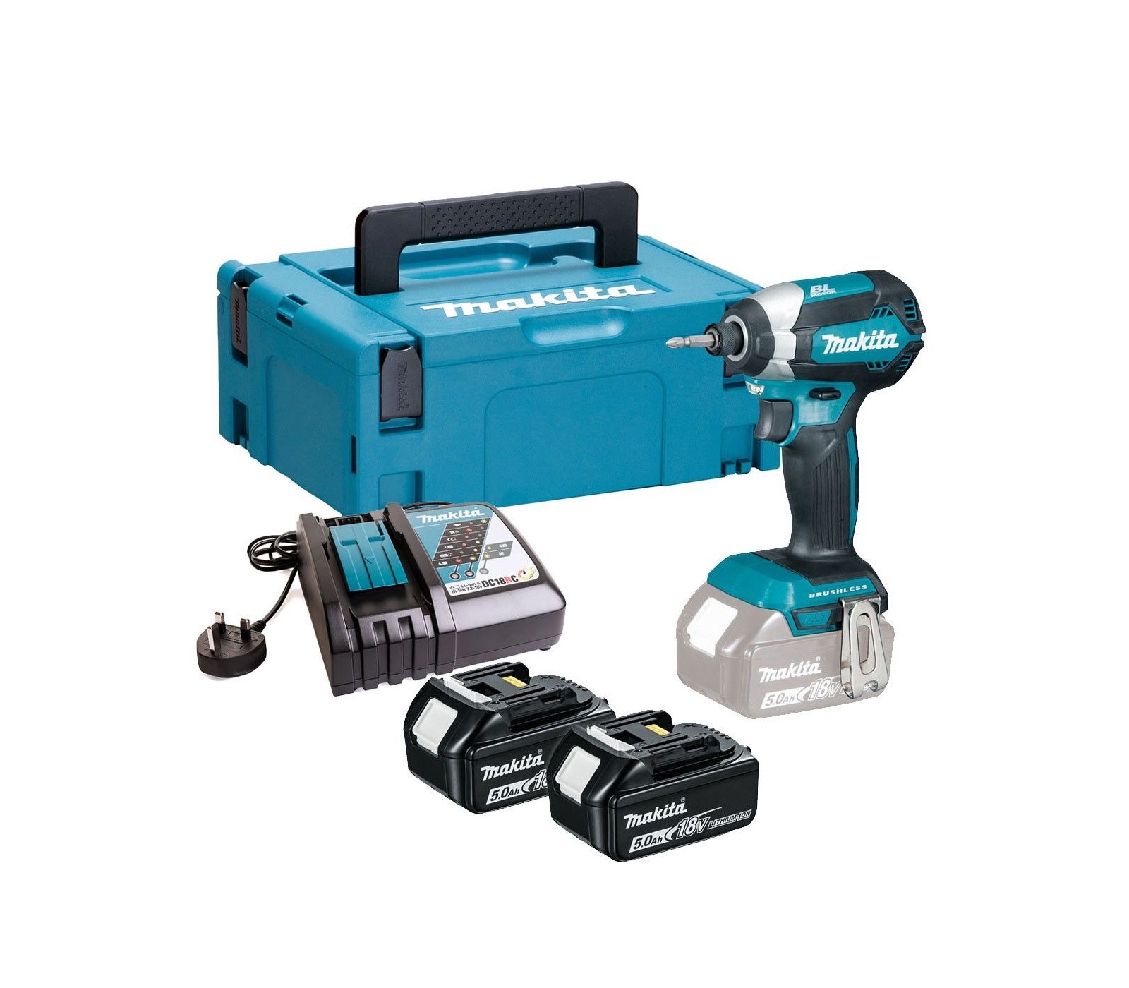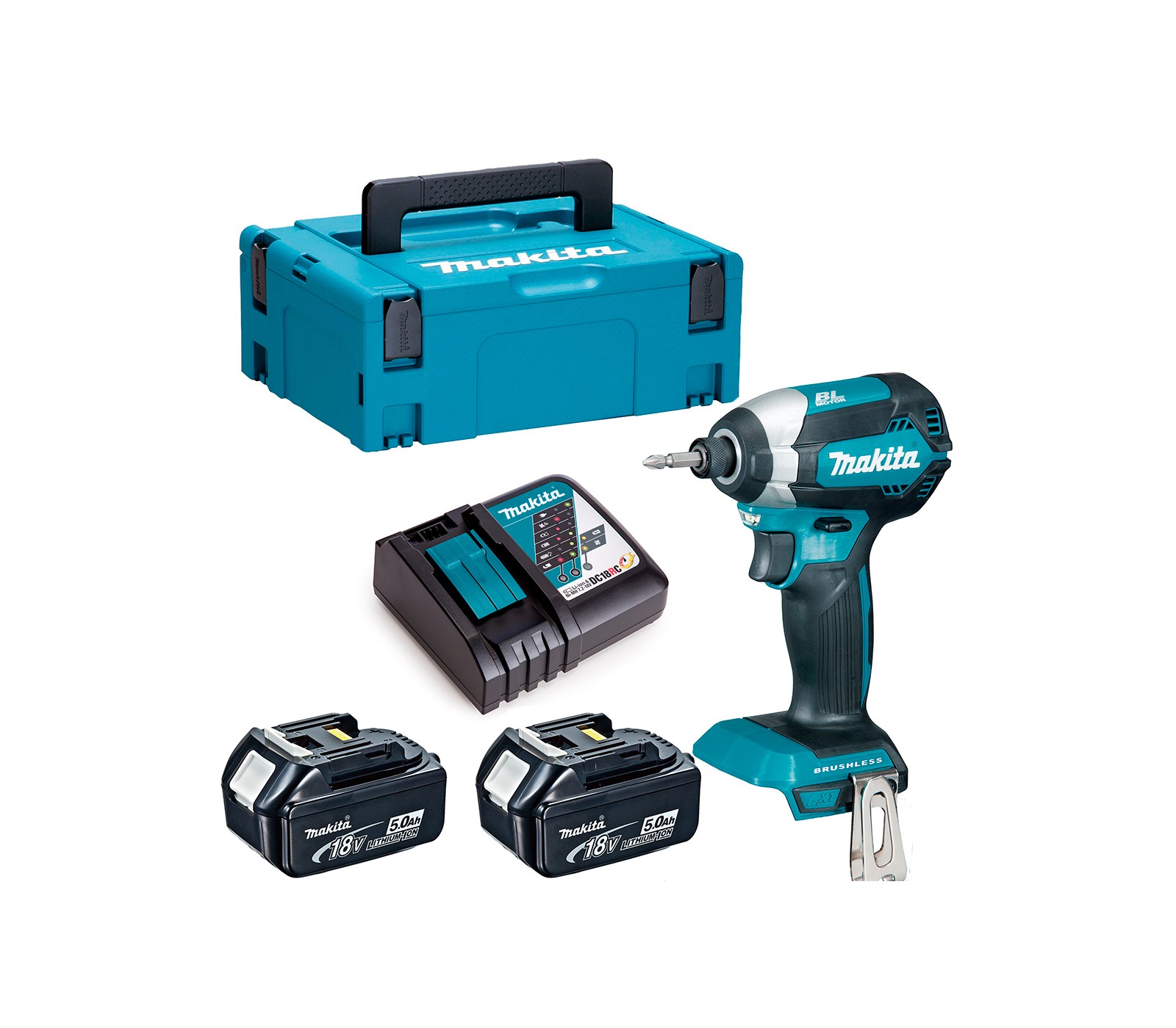 Makita bezvadu trieciena draivera (DTD153RTJ) komplekts, 18 V, 2 x 5 Ah, lādētājs + korpuss