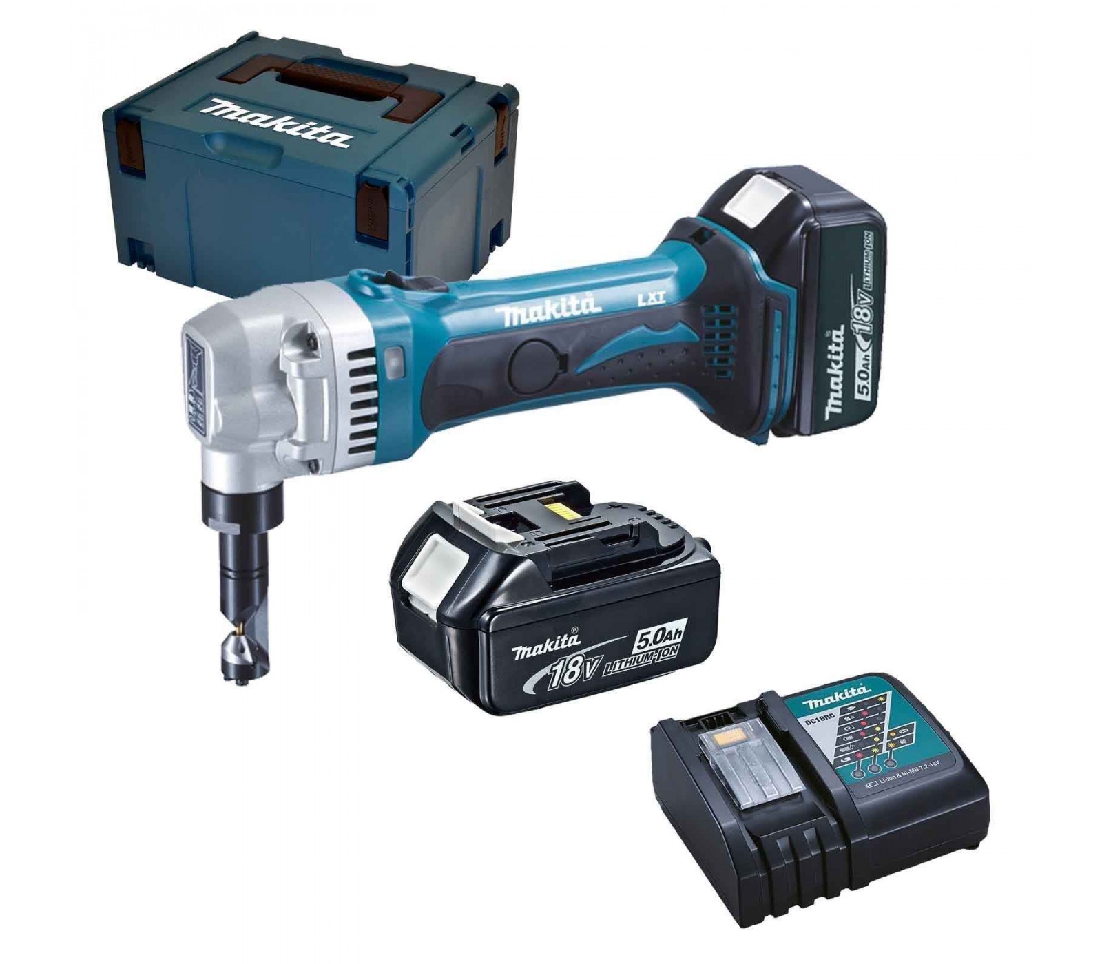 Makita DJN161RTJ bezvadu skārda šķēres, 18 V, 2 x 5 Ah, lādētājs + futrālis