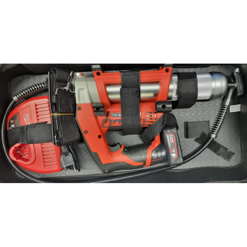 Milwaukee M12 GG-401B bezvadu eļļošanas pistoles komplekts 12V 1 x 4Ah lādētājs + korpuss