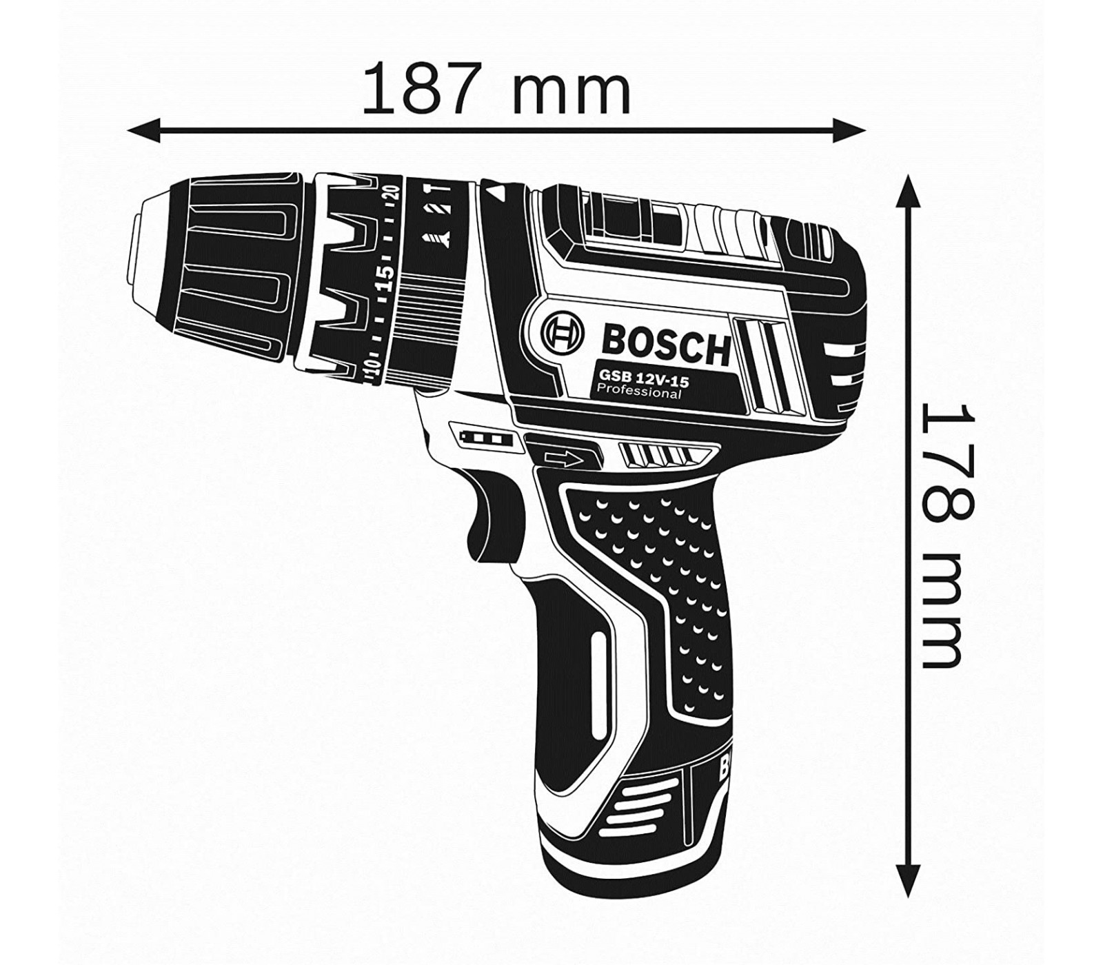 Akumulatora trieciena draiveris Bosch GSB 12V-15, 12 V (bez akumulatora un lādētāja)