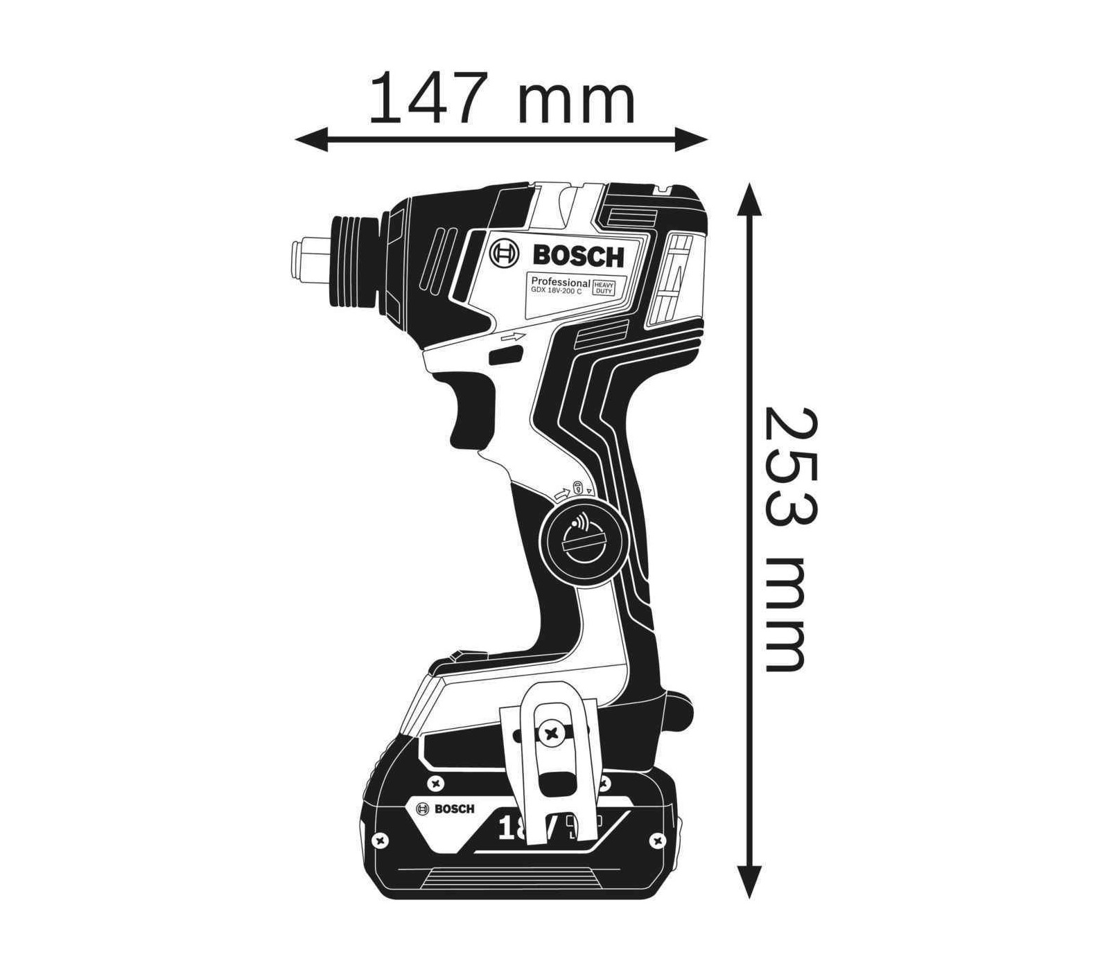 Akumulatora triecienatslēga Bosch GDX 18V-200 C, 18 V (bez akumulatora un lādētāja)