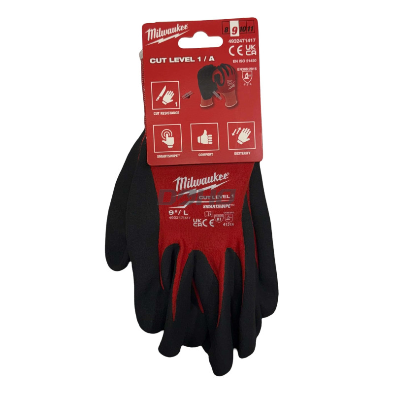 Milwaukee lateksa pārklājuma cimdi, 1. līmeņa griešanai izturīgi L/9 (1 gab.)