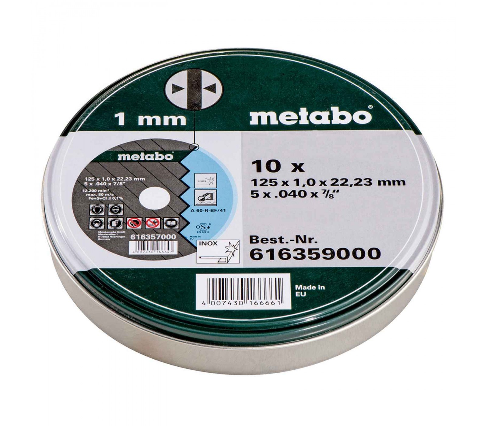 Griešanas disks tēraudam Metabo 616359000, 125 mm, 10 gab.