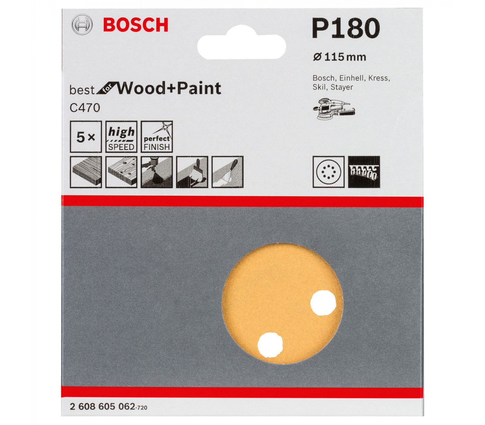 Bosch ekscentriskais slīppapīrs C470, 115 mm, 180 smiltis, 5 gab.