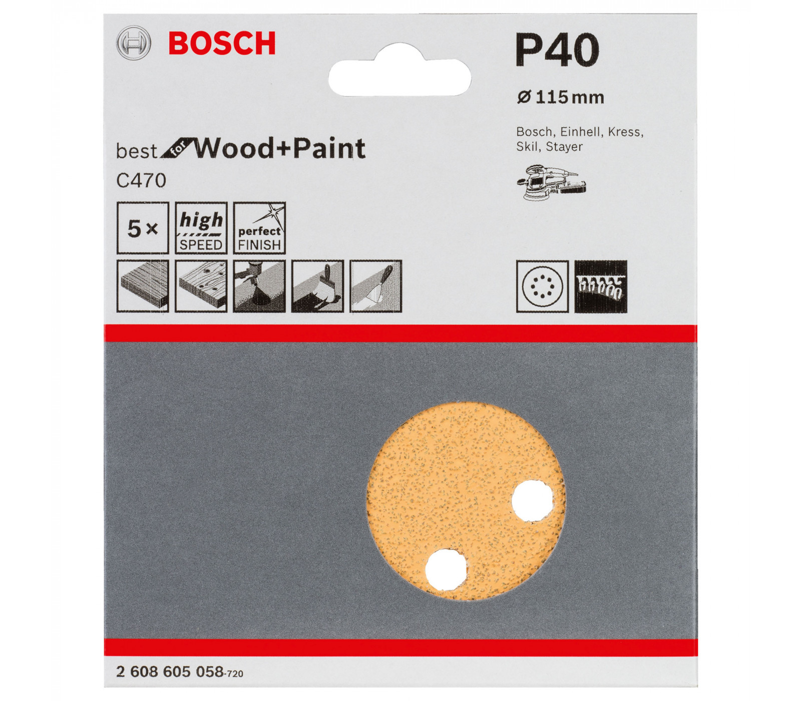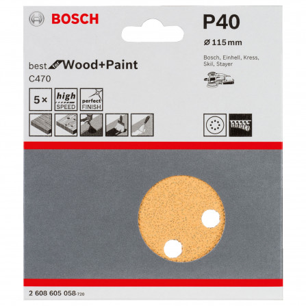 Bosch ekscentriskais slīppapīrs C470, 115 mm, 40 smiltis, 5 gab.