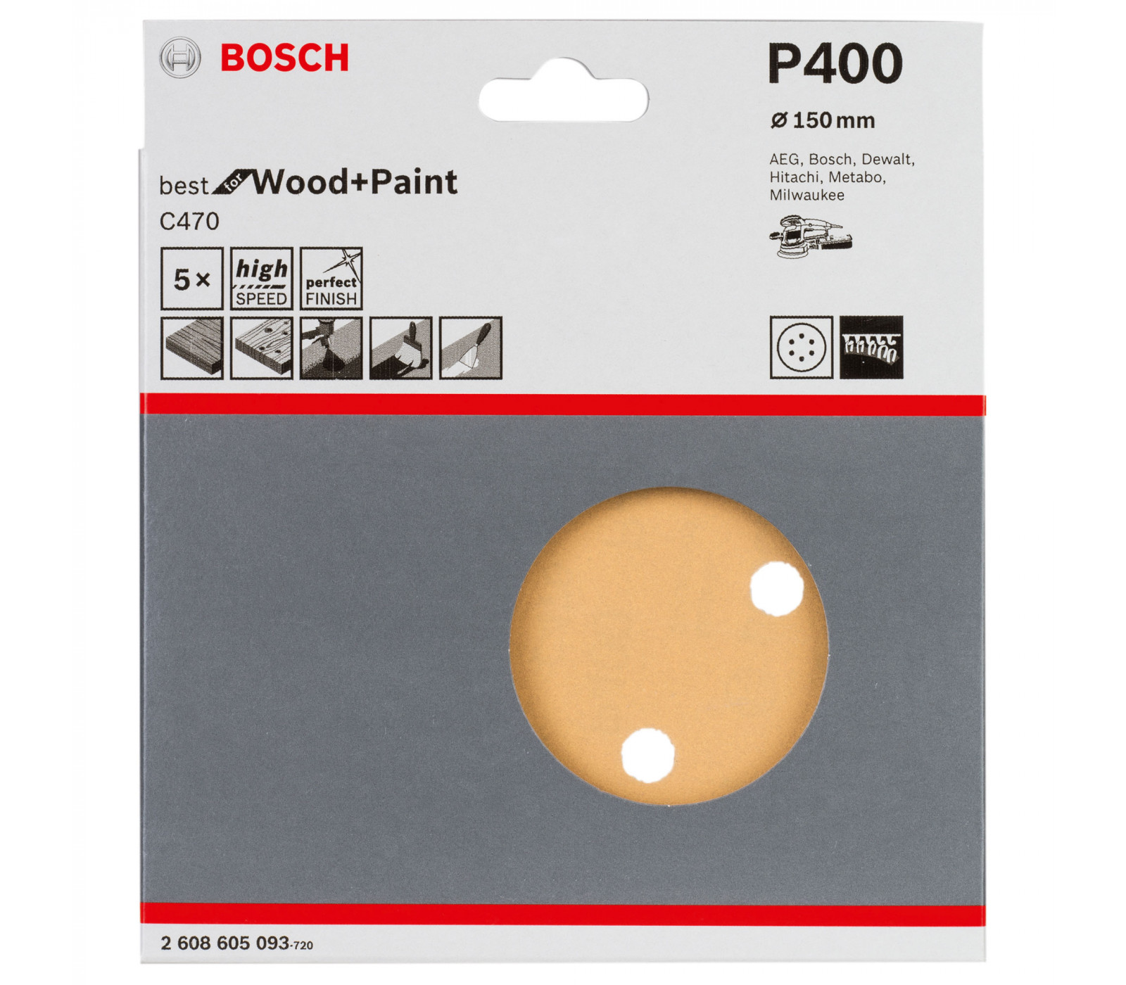 Bosch ekscentriskais slīppapīrs C470, 150 mm, 400 smiltis, 5 gab.