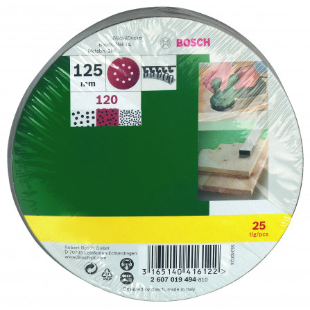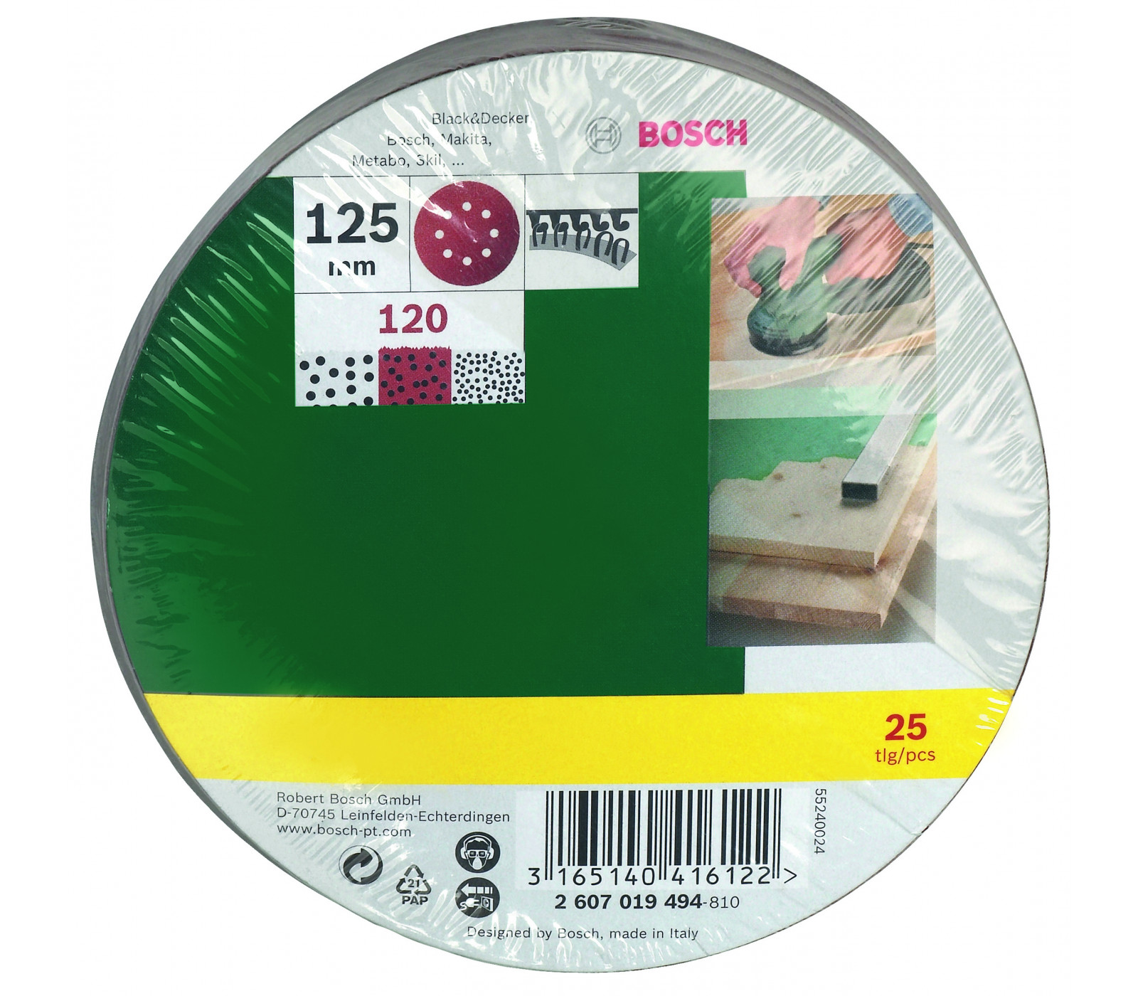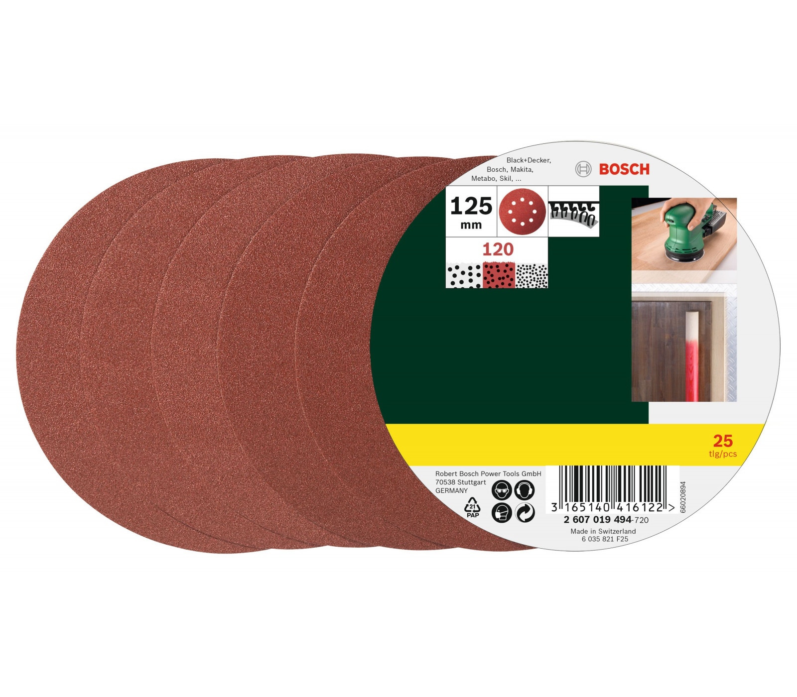 Bosch slīpēšanas papīra komplekts, 125 mm, 120 smiltis, 25 gab.
