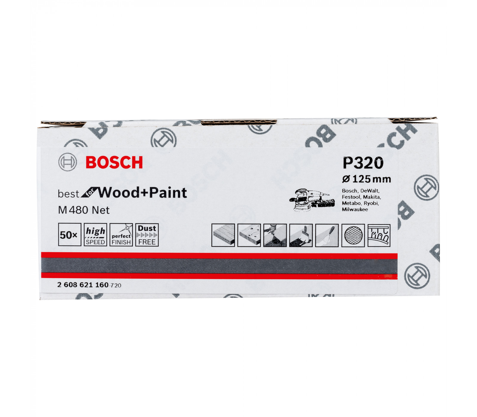 Bosch slīpēšanas papīrs M480 Net, 125 mm, 320 smiltis, 50 gab.