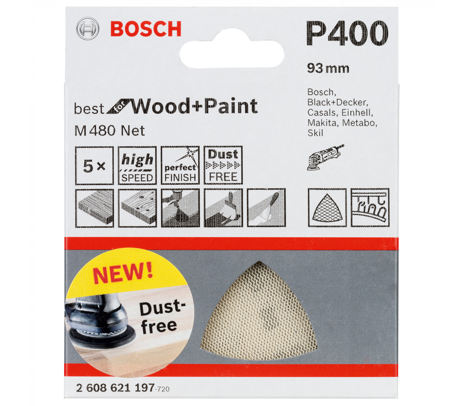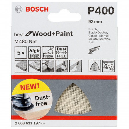 Bosch slīpēšanas papīrs M480 Net, 93 mm, 400 smiltis, 5 gab.