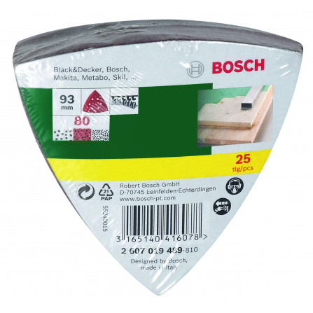 Bosch slīppapīra komplekts, 93 x 115 mm, 80 smiltis, 25 gab.