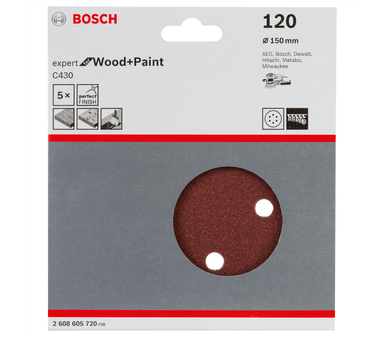 Bosch slīppapīrs C430, 150 mm, 120 smiltis, 5 gab.