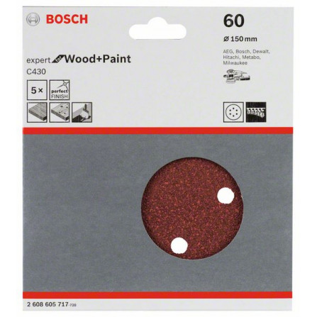 Bosch slīppapīrs C430, 150 mm, 60 smiltis, 5 gab.
