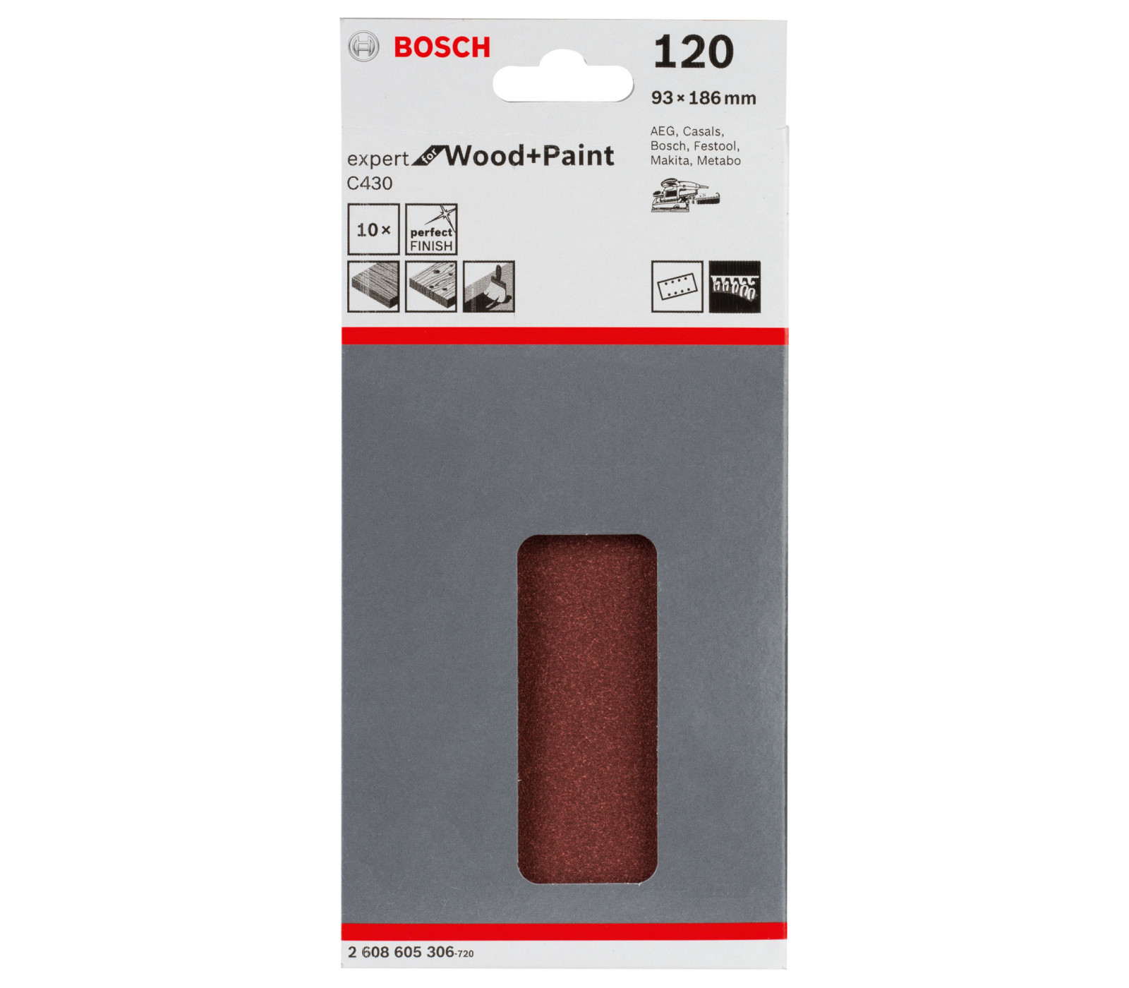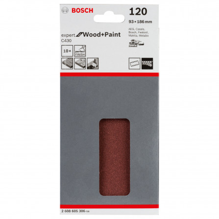 Bosch slīppapīrs C430, 93 x 186 mm, 120 smiltis, 10 gab.