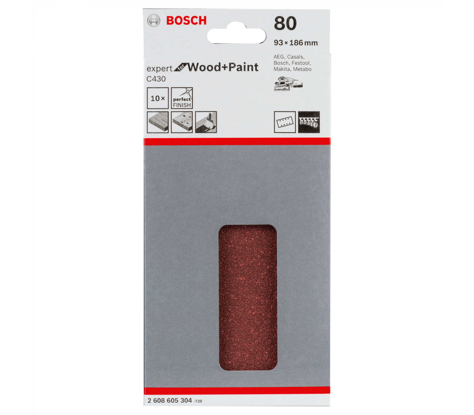 Bosch slīppapīrs C430, 93 x 186 mm, 80 smiltis, 10 gab.