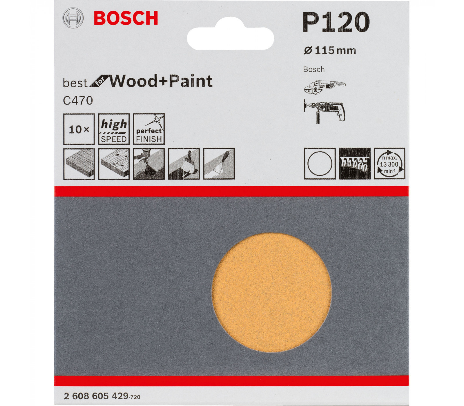 Bosch slīppapīrs C470, 115 mm, 120 smiltis, 10 gab.