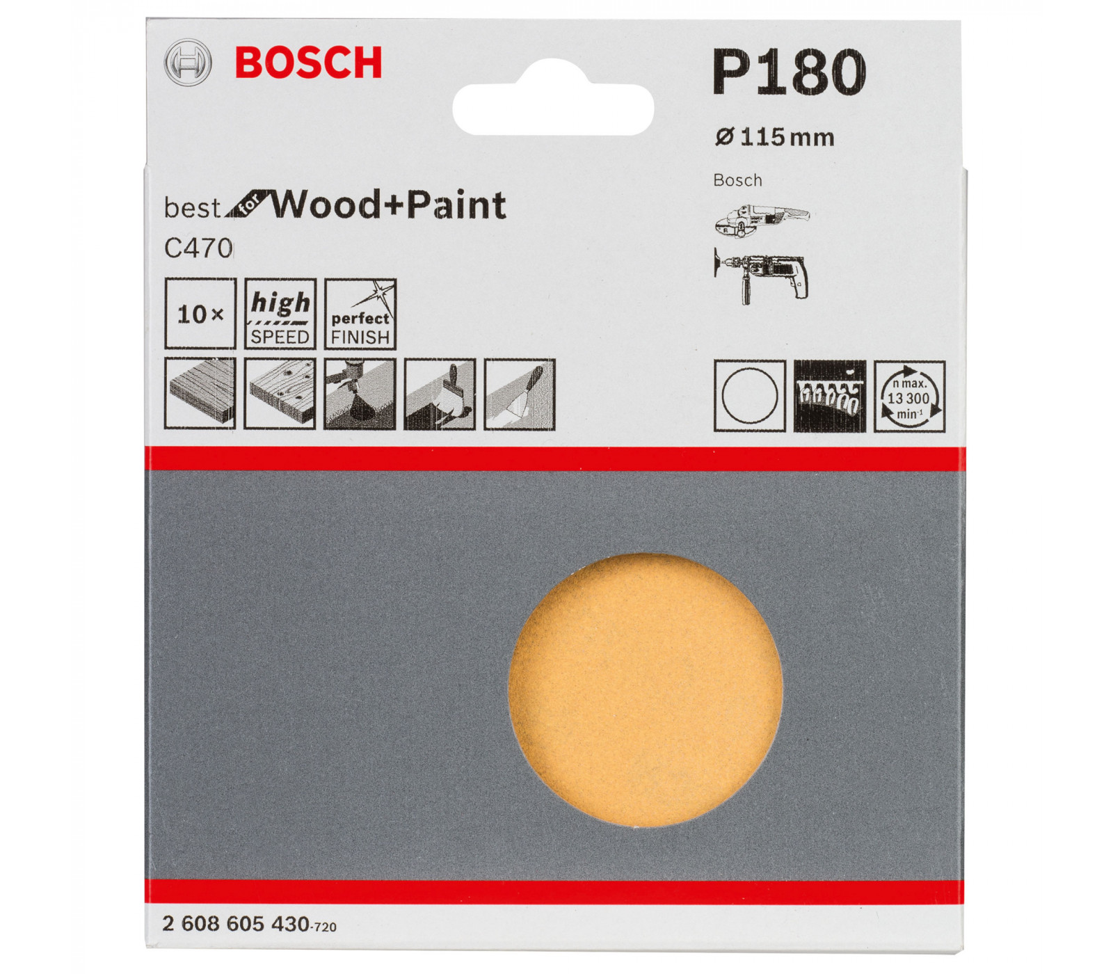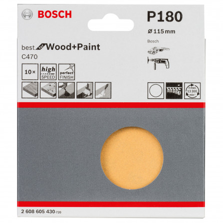 Bosch slīppapīrs C470, 115 mm, 180 smiltis, 10 gab.