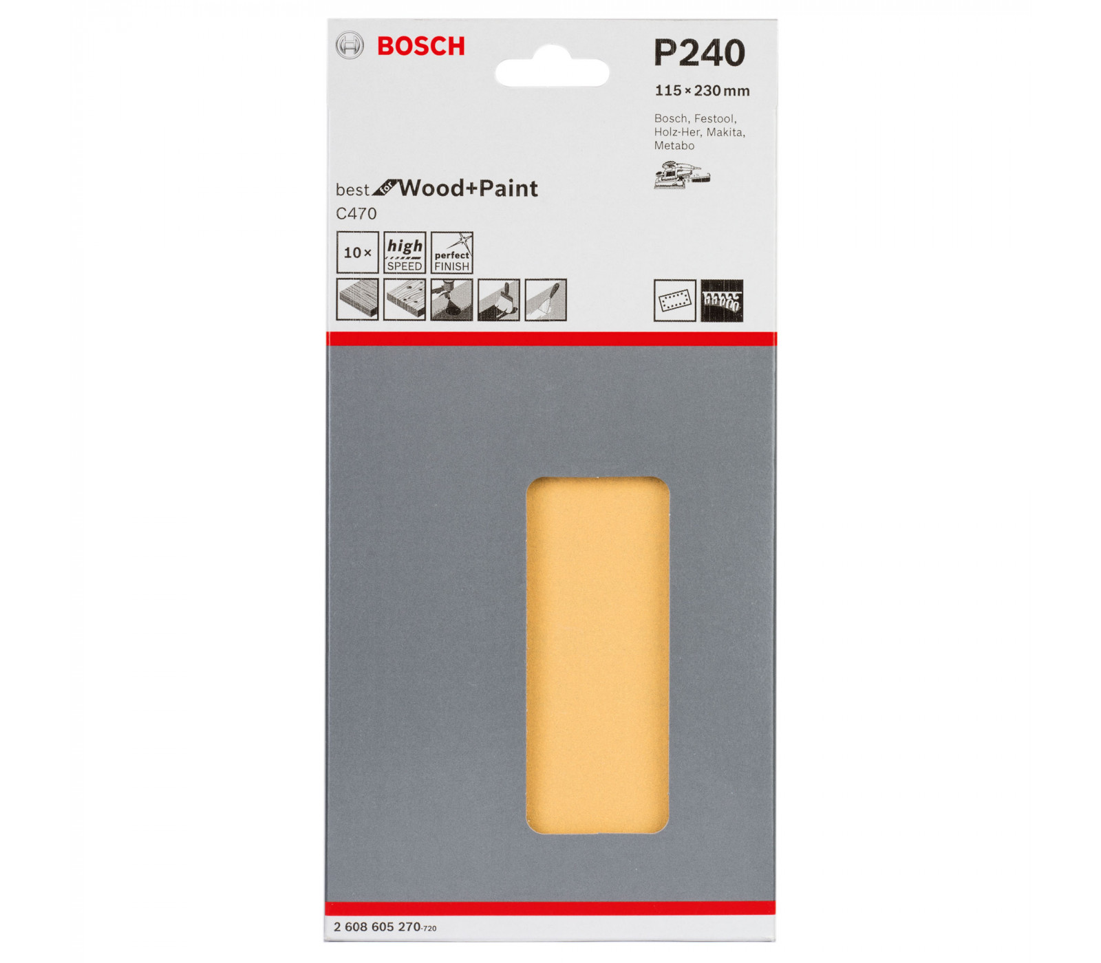 Bosch slīppapīrs C470, 115 x 230 mm, 240 smiltis, 10 gab.