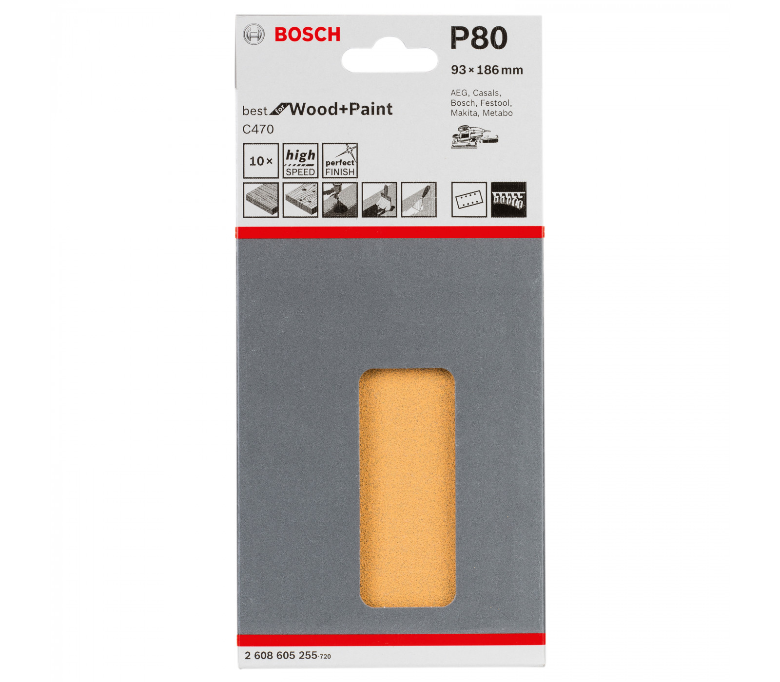 Bosch slīppapīrs C470, 93 x 186 mm, 80 smiltis, 10 gab.