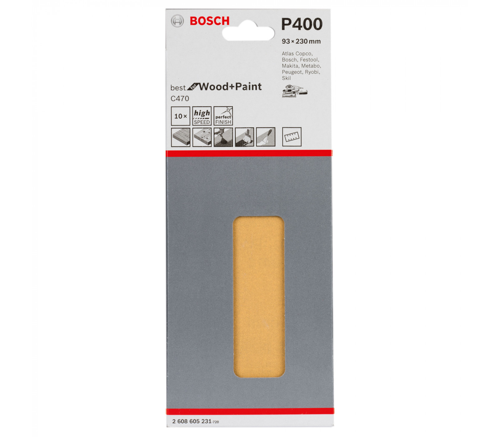 Bosch slīppapīrs C470, 93 x 230 mm, 60 smiltis, 10 gab. (ar caurumiem)