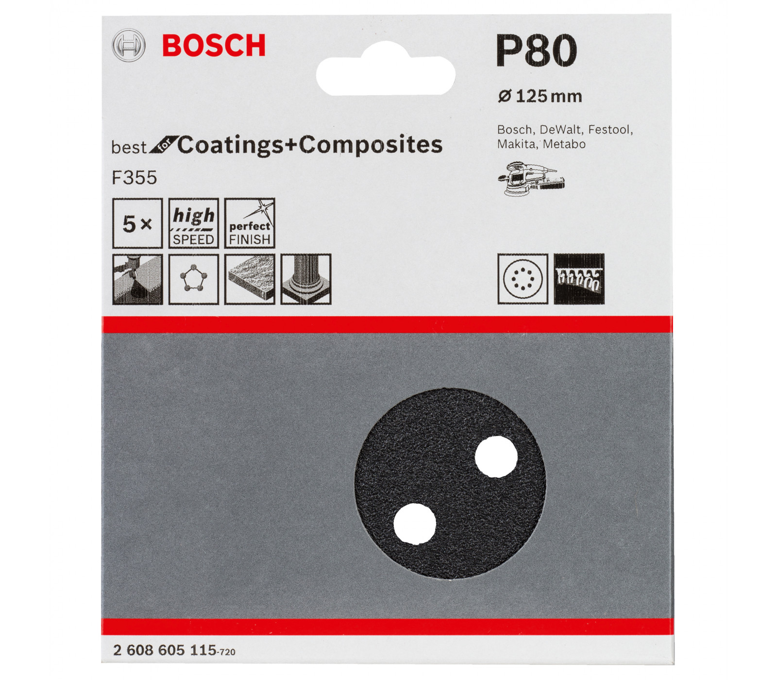 Bosch slīppapīrs F355, 125 mm, 80 smiltis, 5 gab.