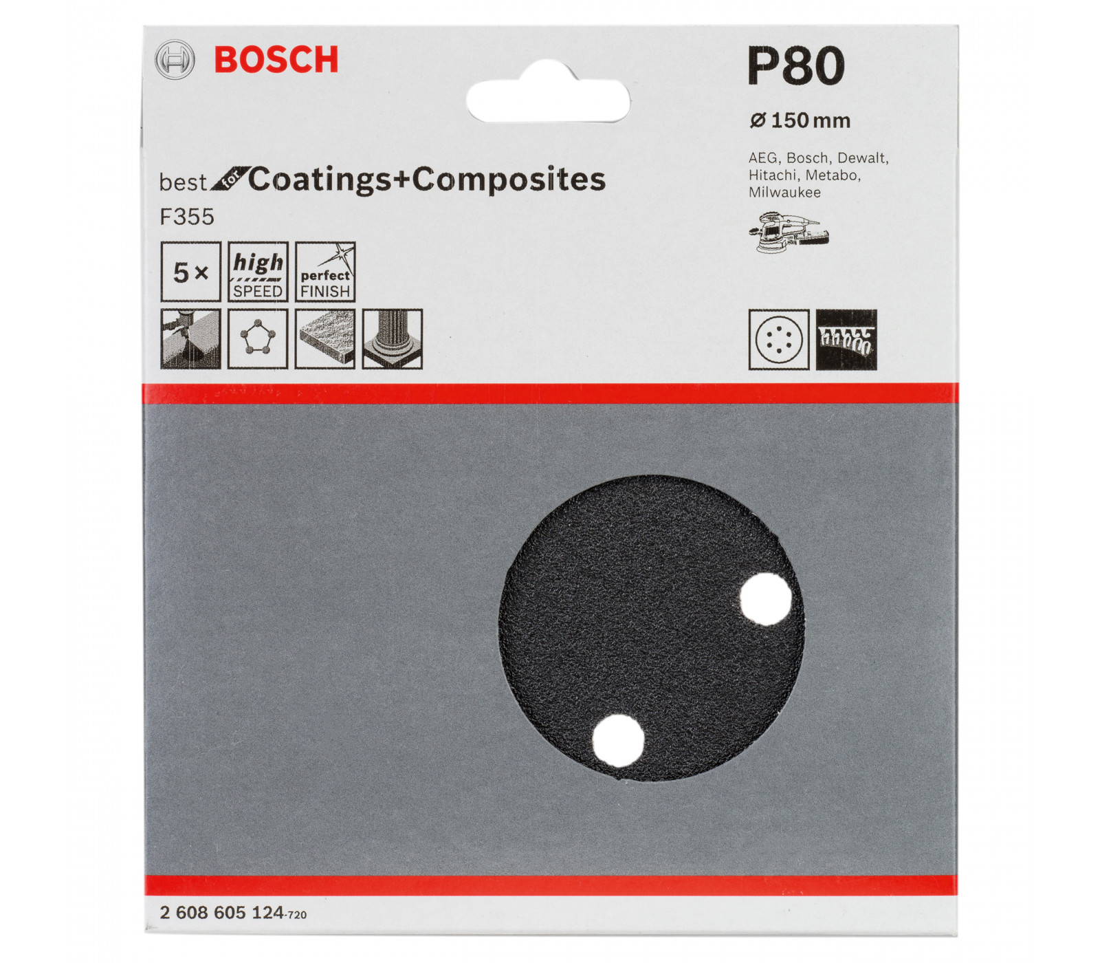 Bosch slīppapīrs F355, 150 mm, 80 smiltis, 5 gab.