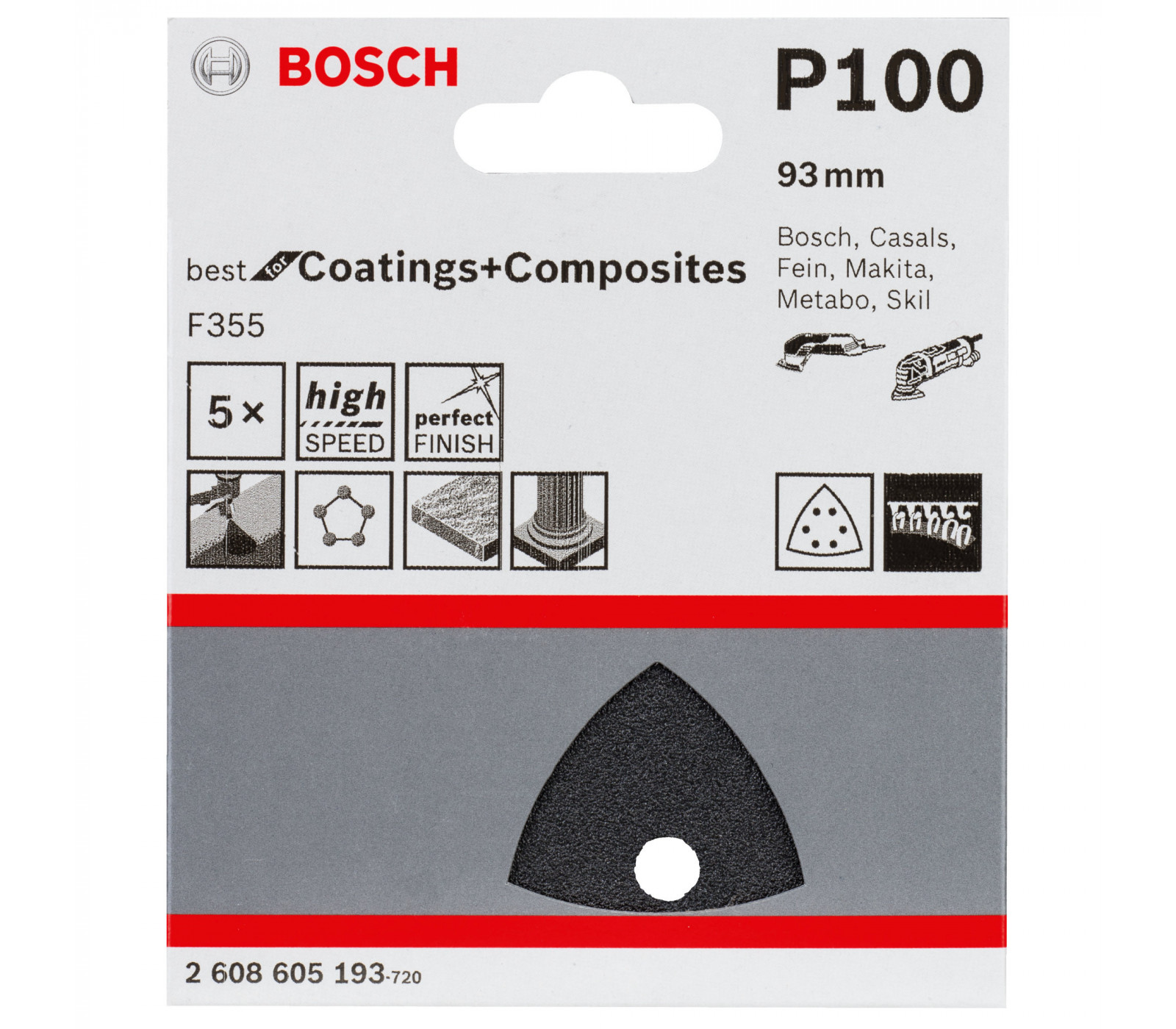 Bosch slīppapīrs F355, 93 mm, 100 smiltis, 5 gab.