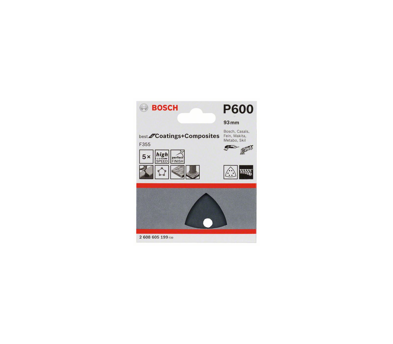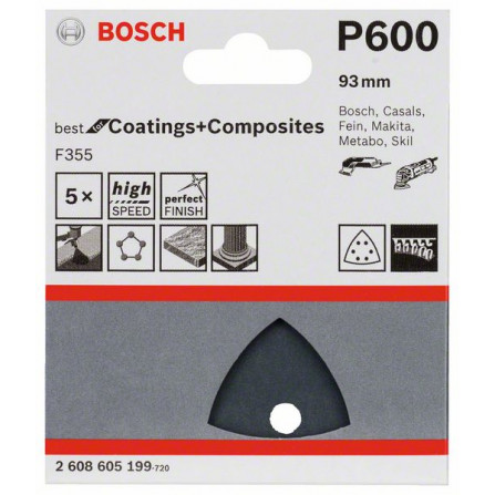 Bosch slīppapīrs F355, 93 mm, 600 smiltis, 5 gab.