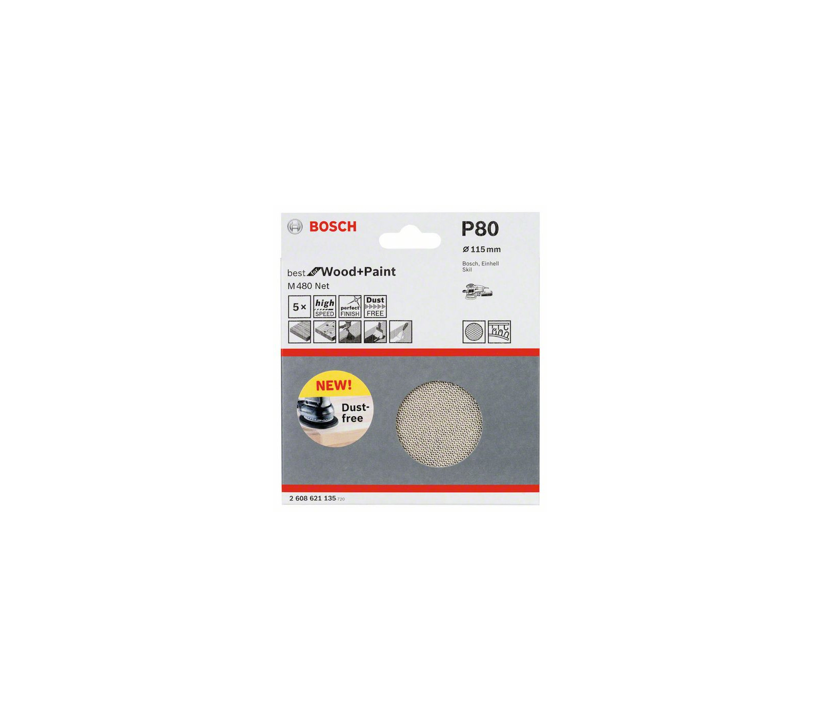 Bosch slīppapīrs M480 Net, 115 mm, 80 smiltis, 5 gab.