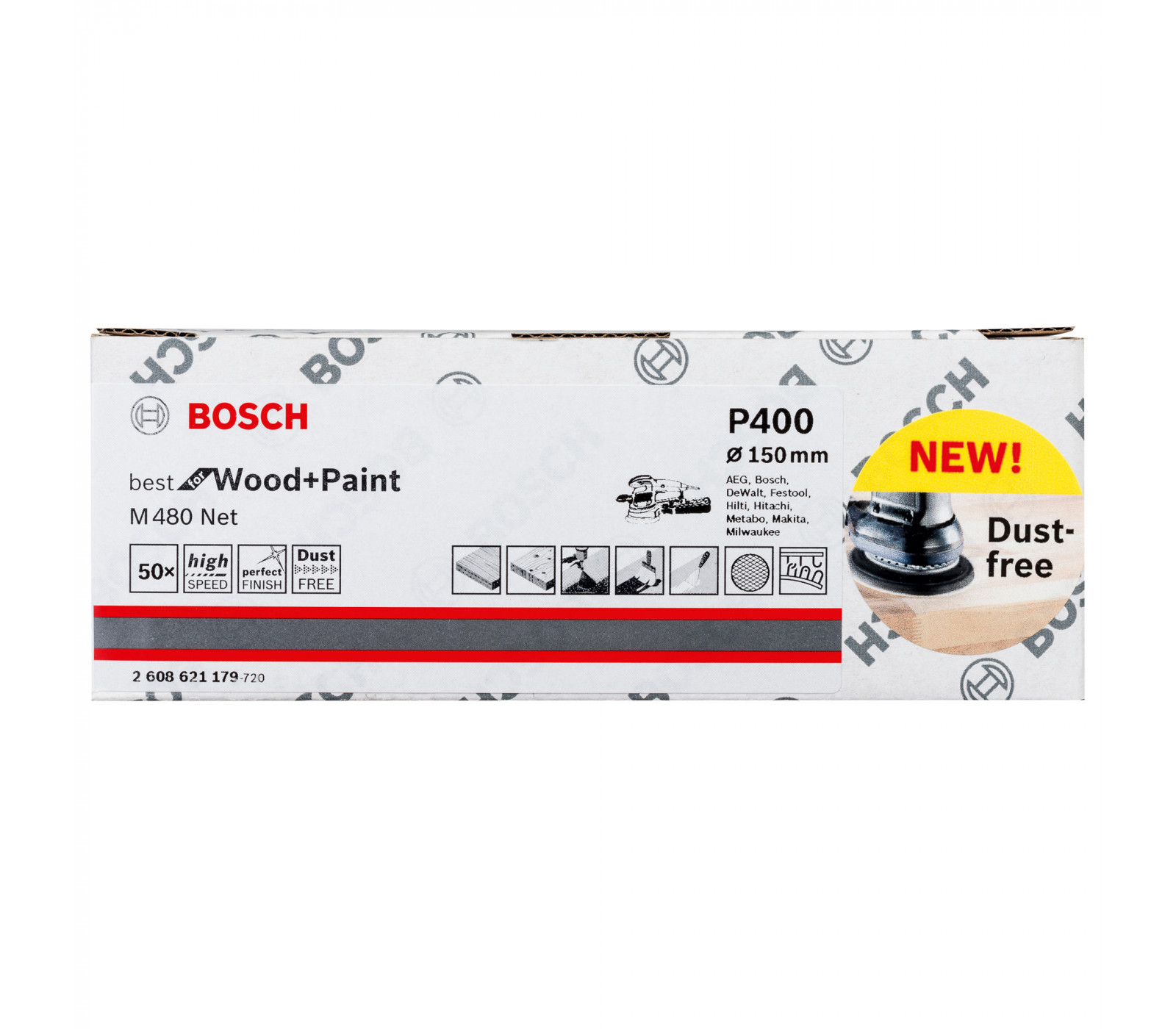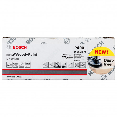 Bosch slīppapīrs M480 Net, 150 mm, 400 smiltis, 50 gab.
