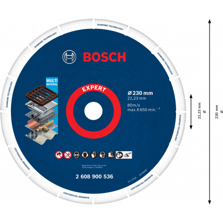 Dimanta griešanas disks čugunam un tēraudam Bosch, 230 x 22,23 mm, 1 gab.