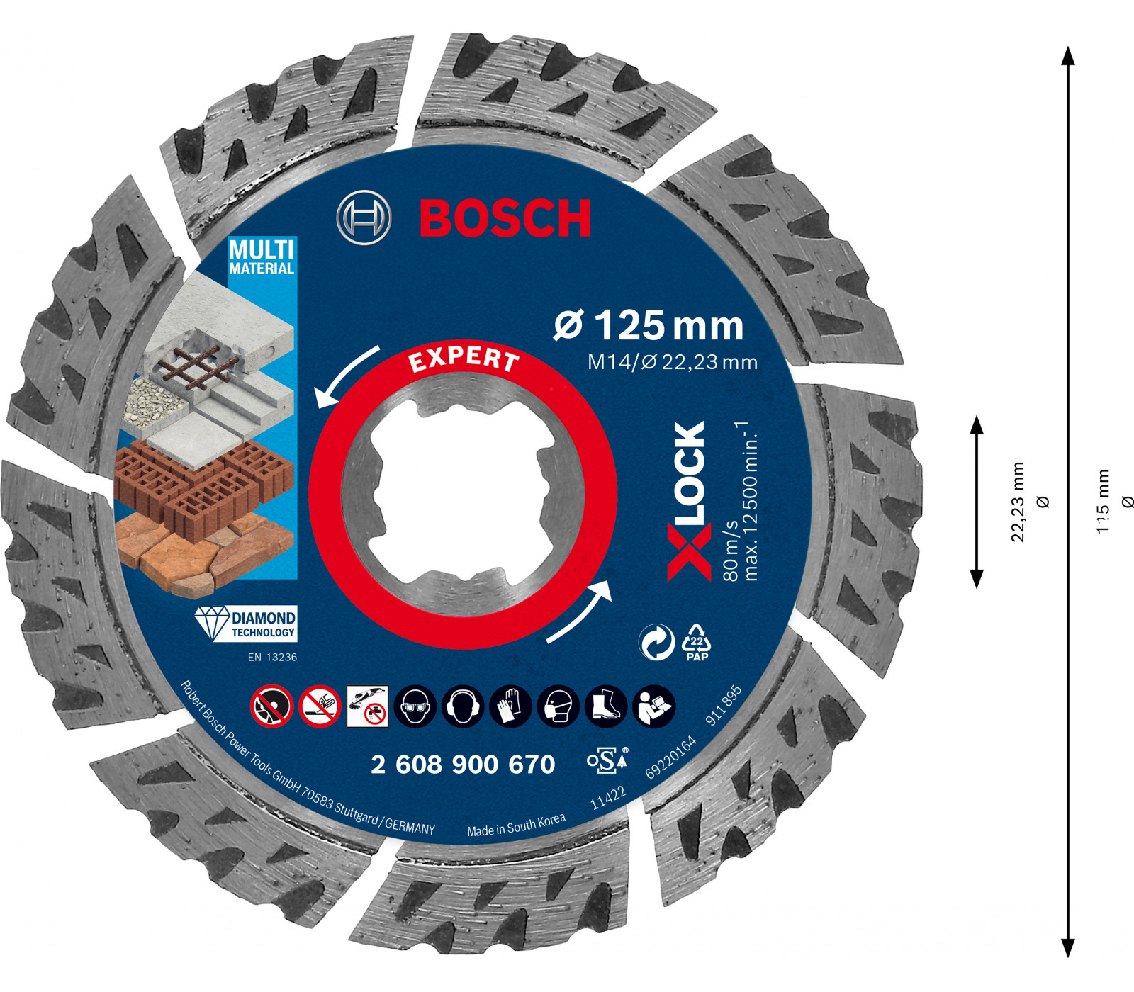 Universāls dimanta griešanas disks būvniecībai Bosch Expert, 125 x 22,23 x 2,4 mm, 1 gab.