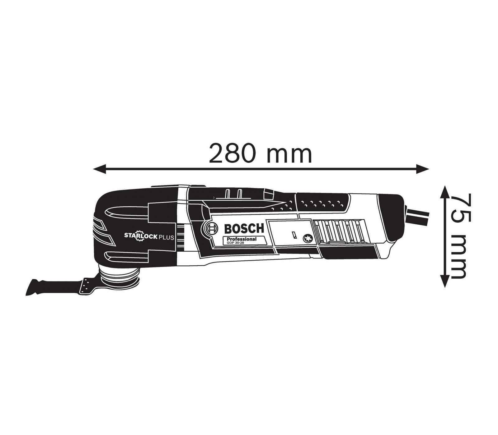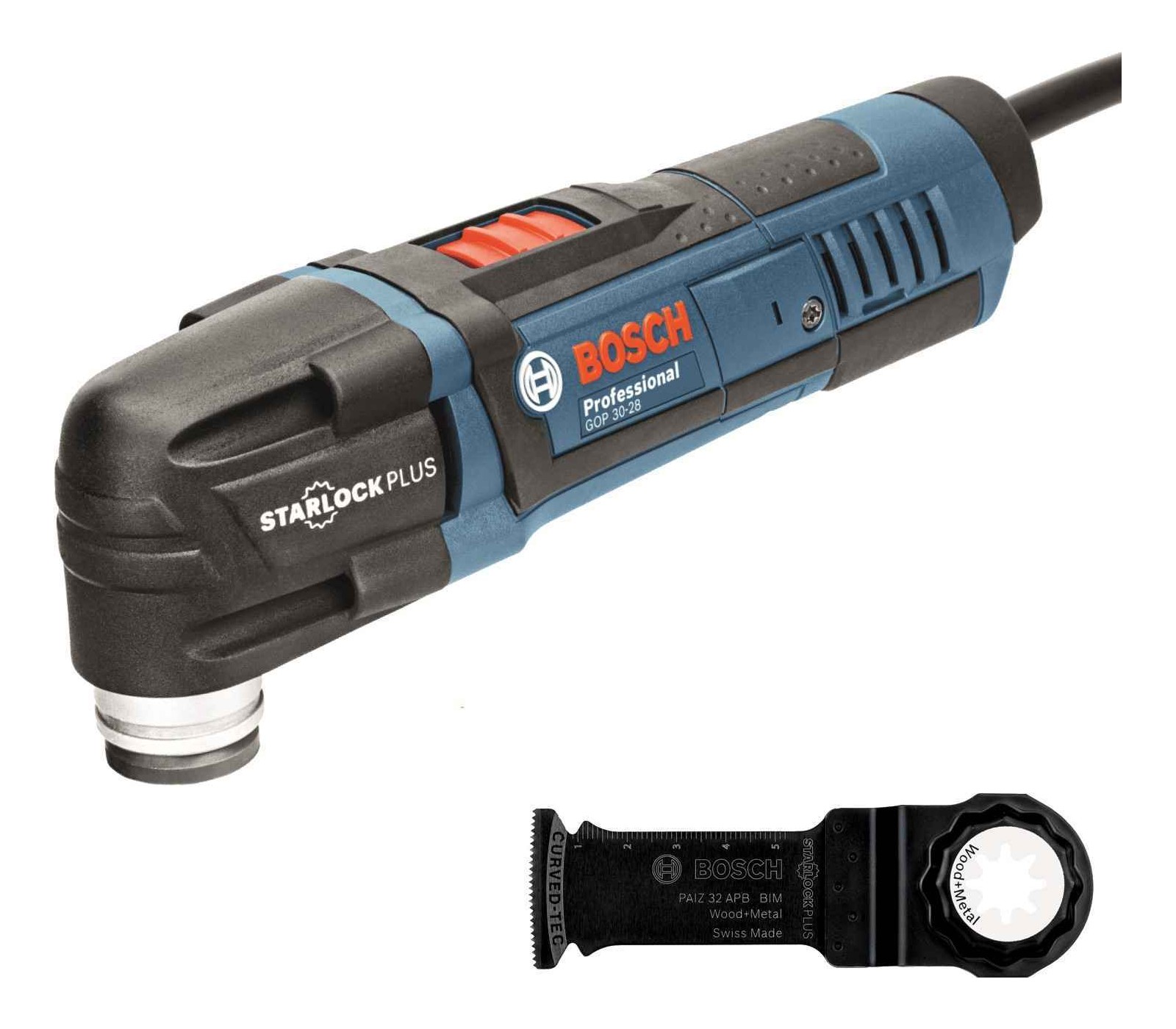 Bosch GOP 30-28 Professional ir daudzfunkcionāls instruments ar 300 W motoru, nodrošinot izcilu jaudas pārvadi caur Starlock sistēmu. Ergonomiskais dizains ļauj viegli satvert un kontrolēt instrumentu. Magnētiskā ātrās maiņas sistēma ļauj viegli mainīt piederumus. Svārstību ātrums: 8 000 – 20 000 min-1, svārstījuma leņķis 1,4°. Svars: 1,5 kg. Ideāli piemērots flīžu griešanai, paviršu slīpēšanai un gipso plākšņu griešanai. Saderīgs ar Starlock un StarlockPlus sistēmām.